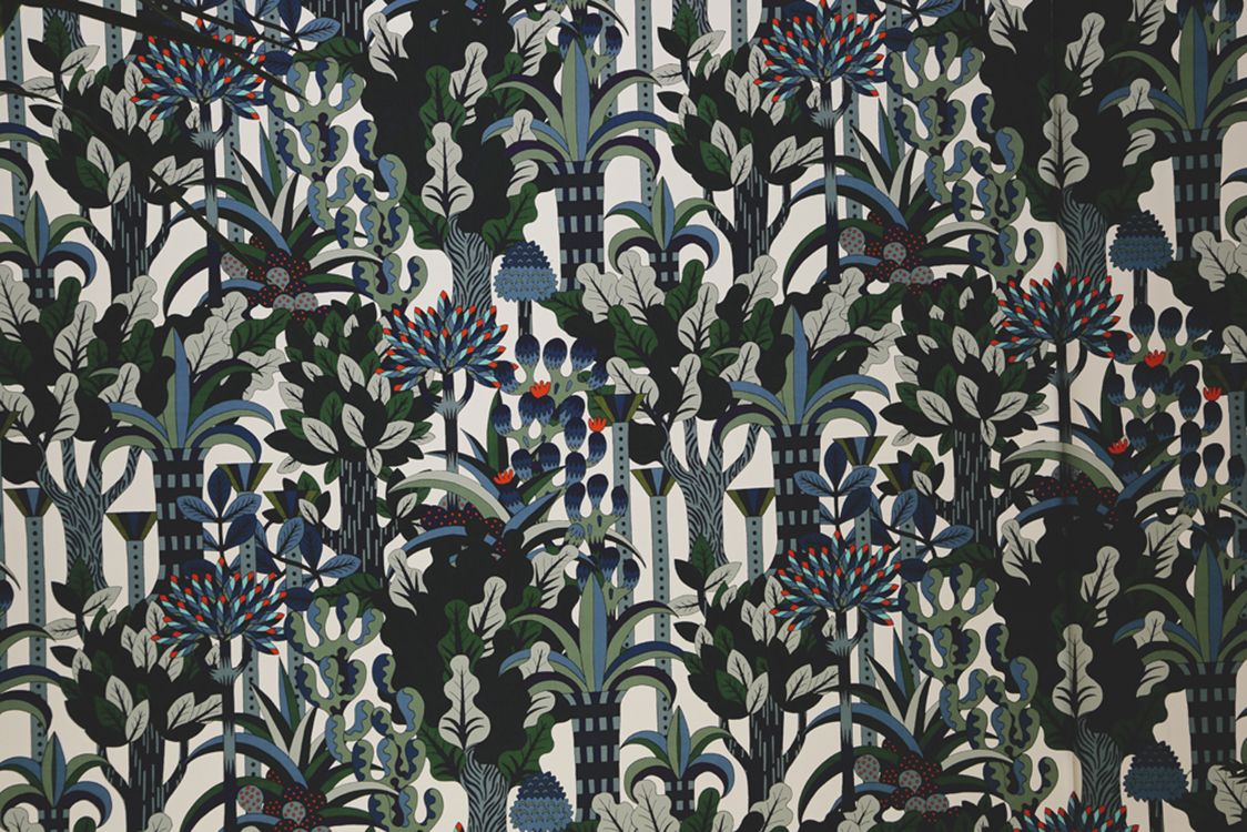 Description: A wallpaper with a pattern of flowers and leaves on it's side and a black background with a white stripe.