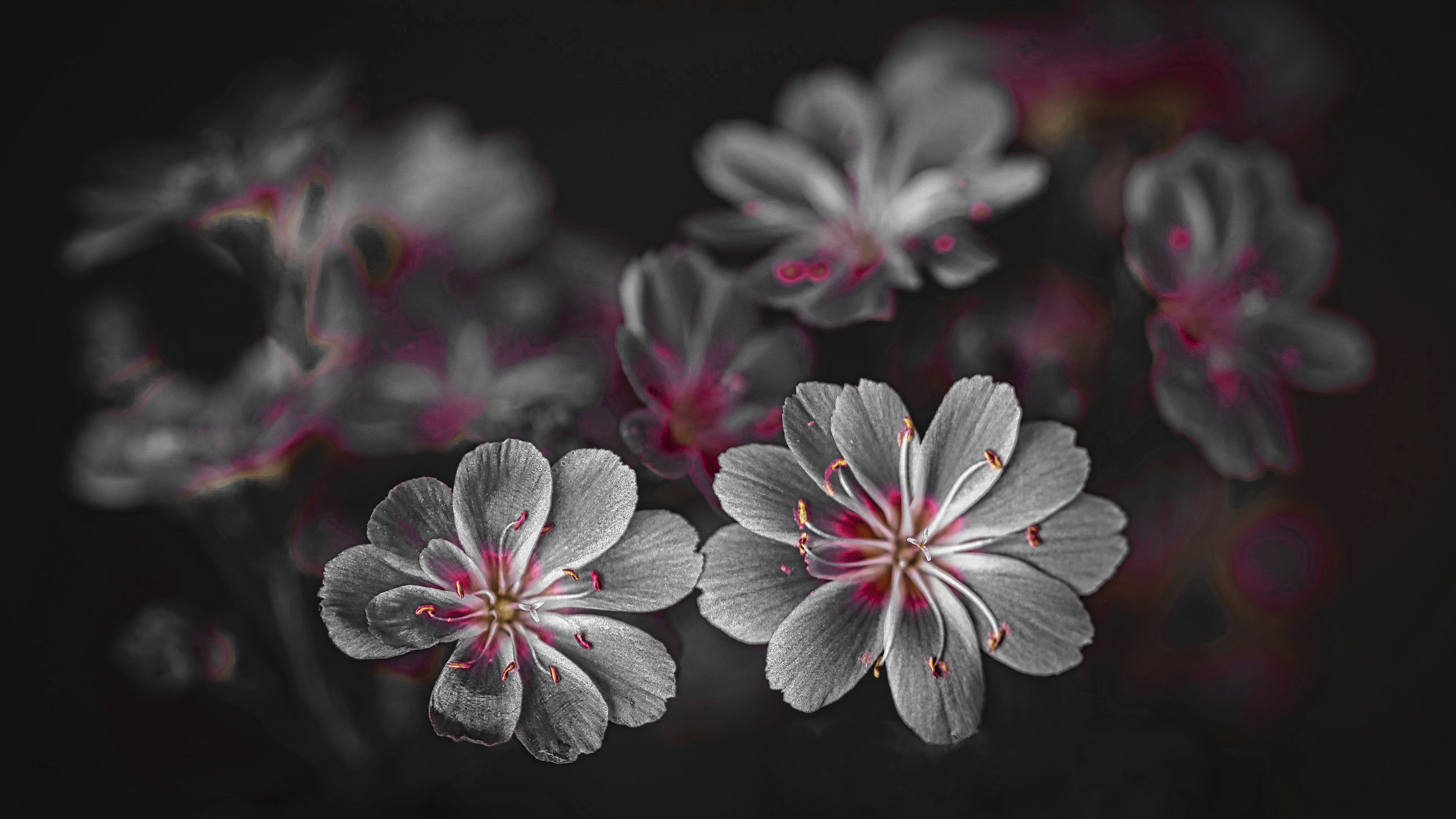 Description: A bunch of flowers that are in the dark room with a black background and a red center on the center.