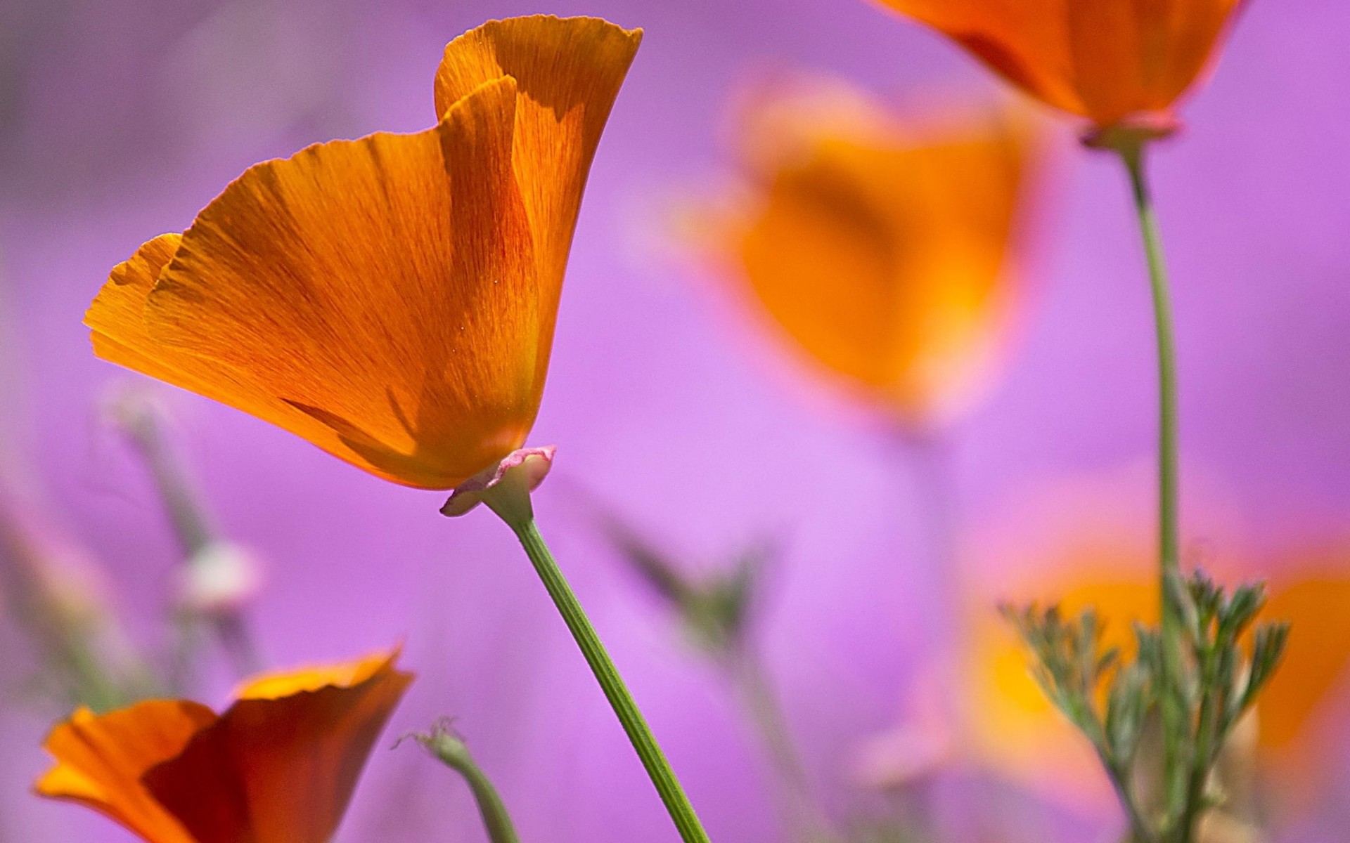 Description: A close up of a bunch of flowers with purple background and yellow petals in the foreground.