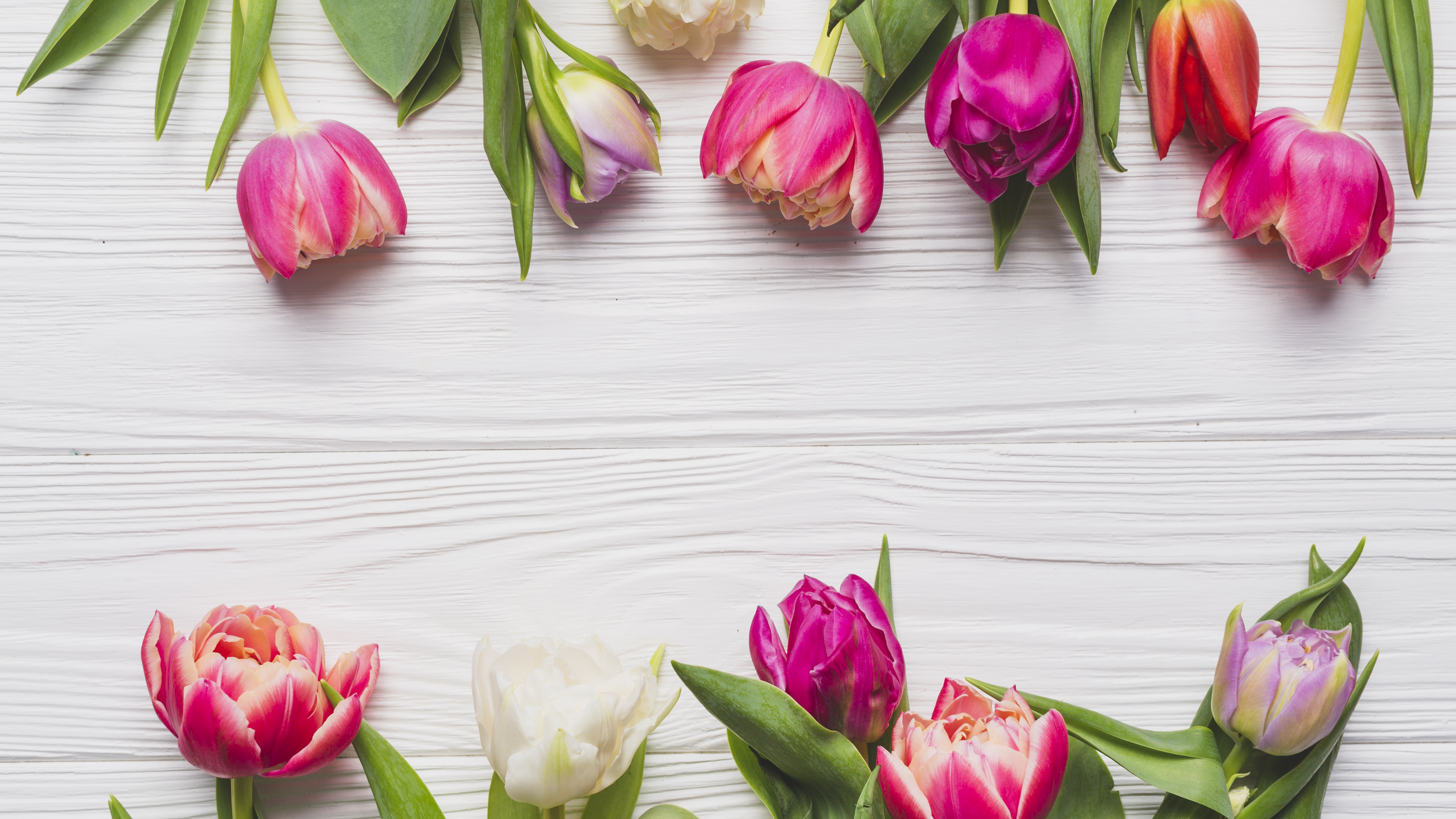 Description: A bunch of flowers are laying on a white surface with a place for a text or a picture to put on it.