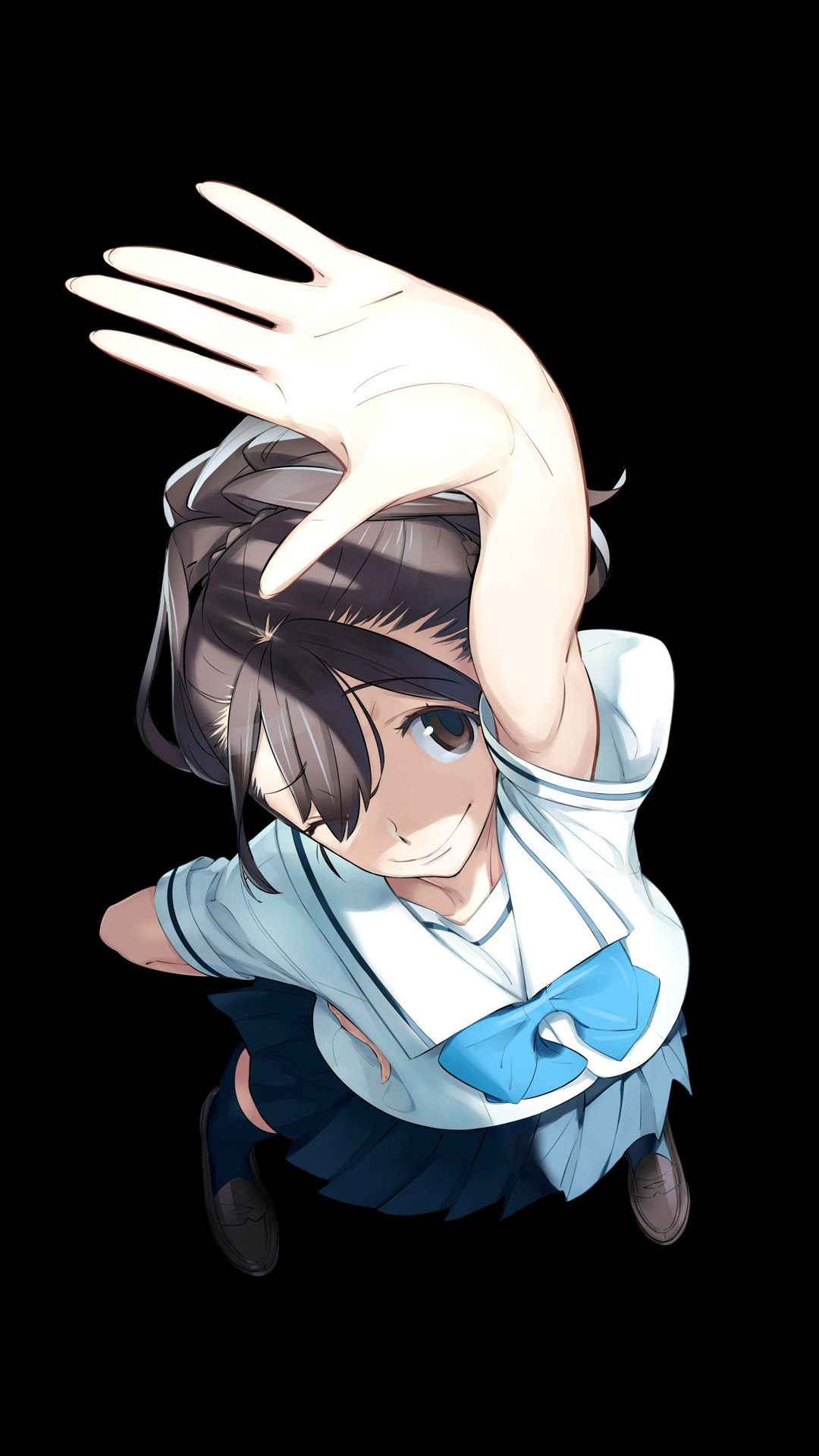 Description: A person with a white shirt and blue pants is flying through the air with their hands up in the air.