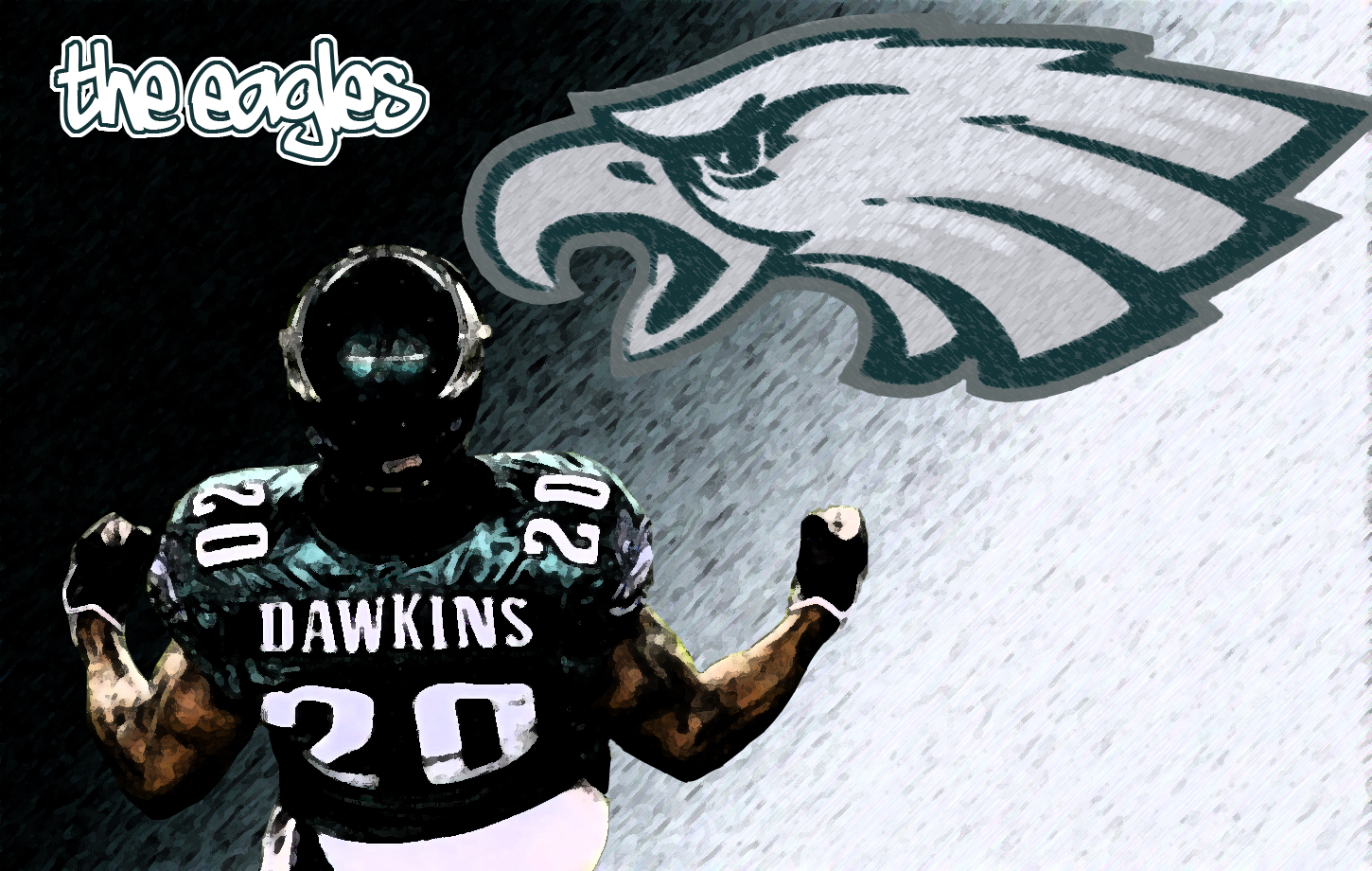 Description: A football player with a helmet on and a eagles logo on the side of his shirt and the words.