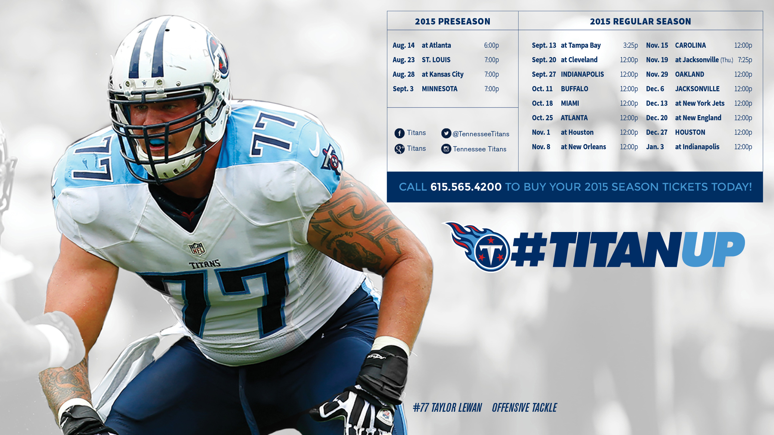 Description: A football player is shown in a graphic style with the titans roster on it's back side and the titans'name on the front.