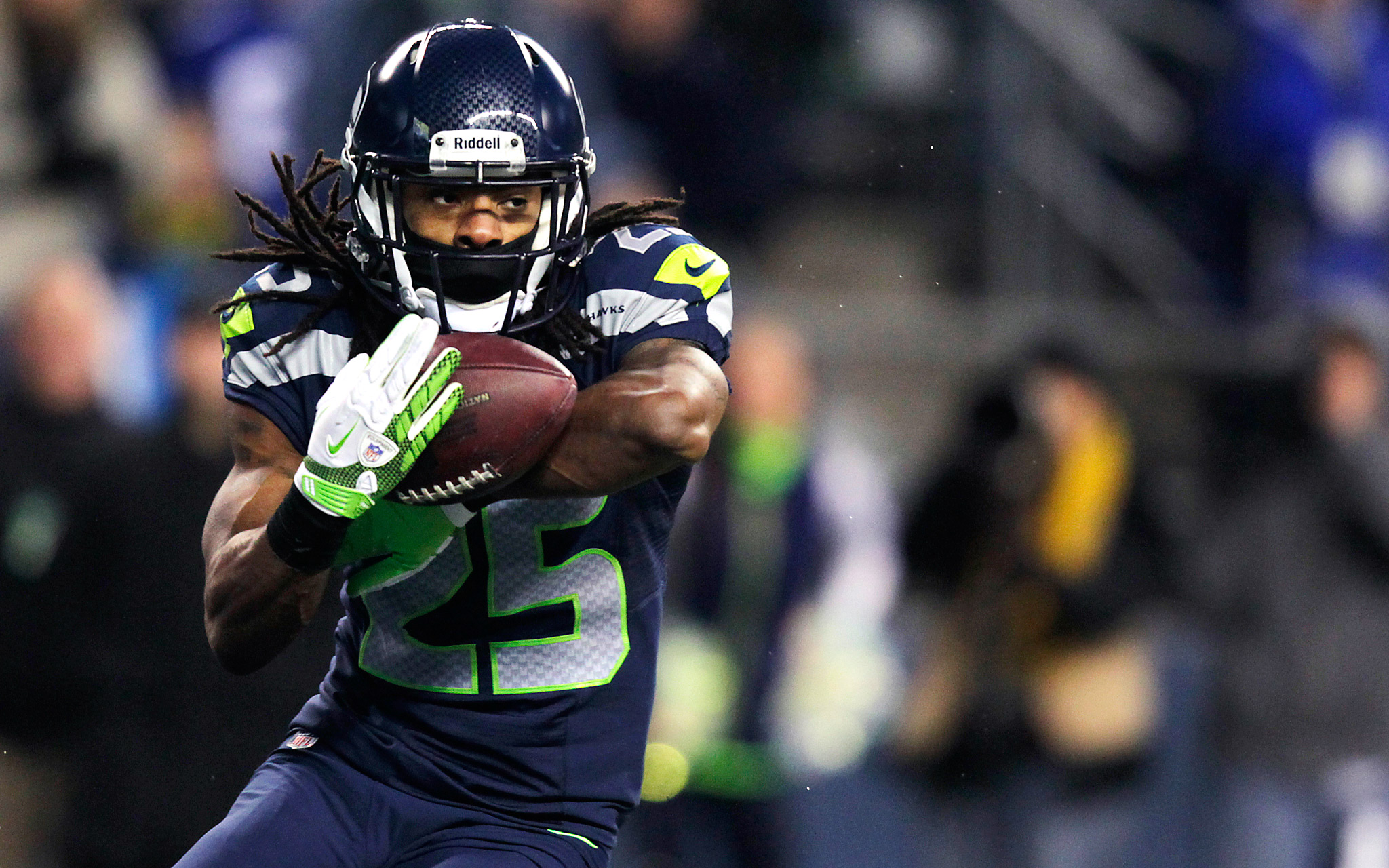 Description: A football player holding a ball in his hands and a crowd watching him from the sidelines watching him.