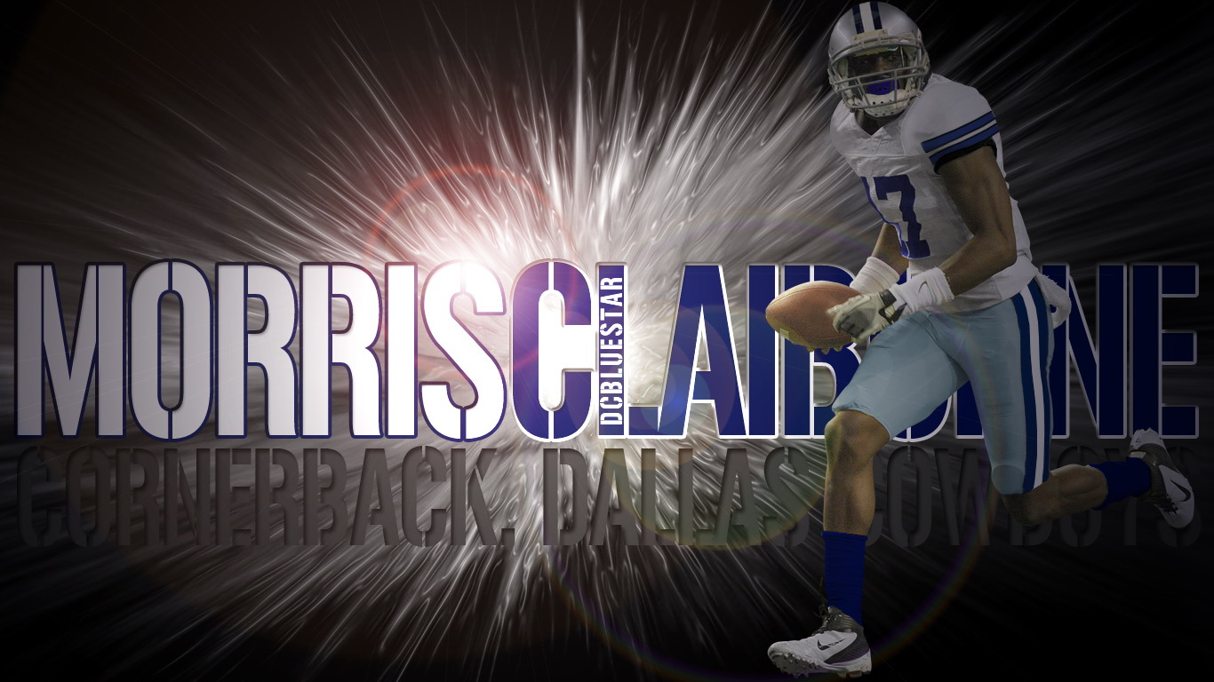 Description: A football player running with the words morriscaire on it's sideline and a background.