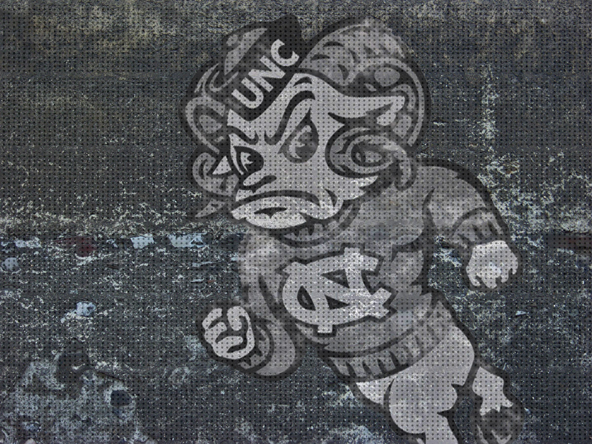 Description: A drawing of a football player running with a ball in his hand and a helmet on his head.