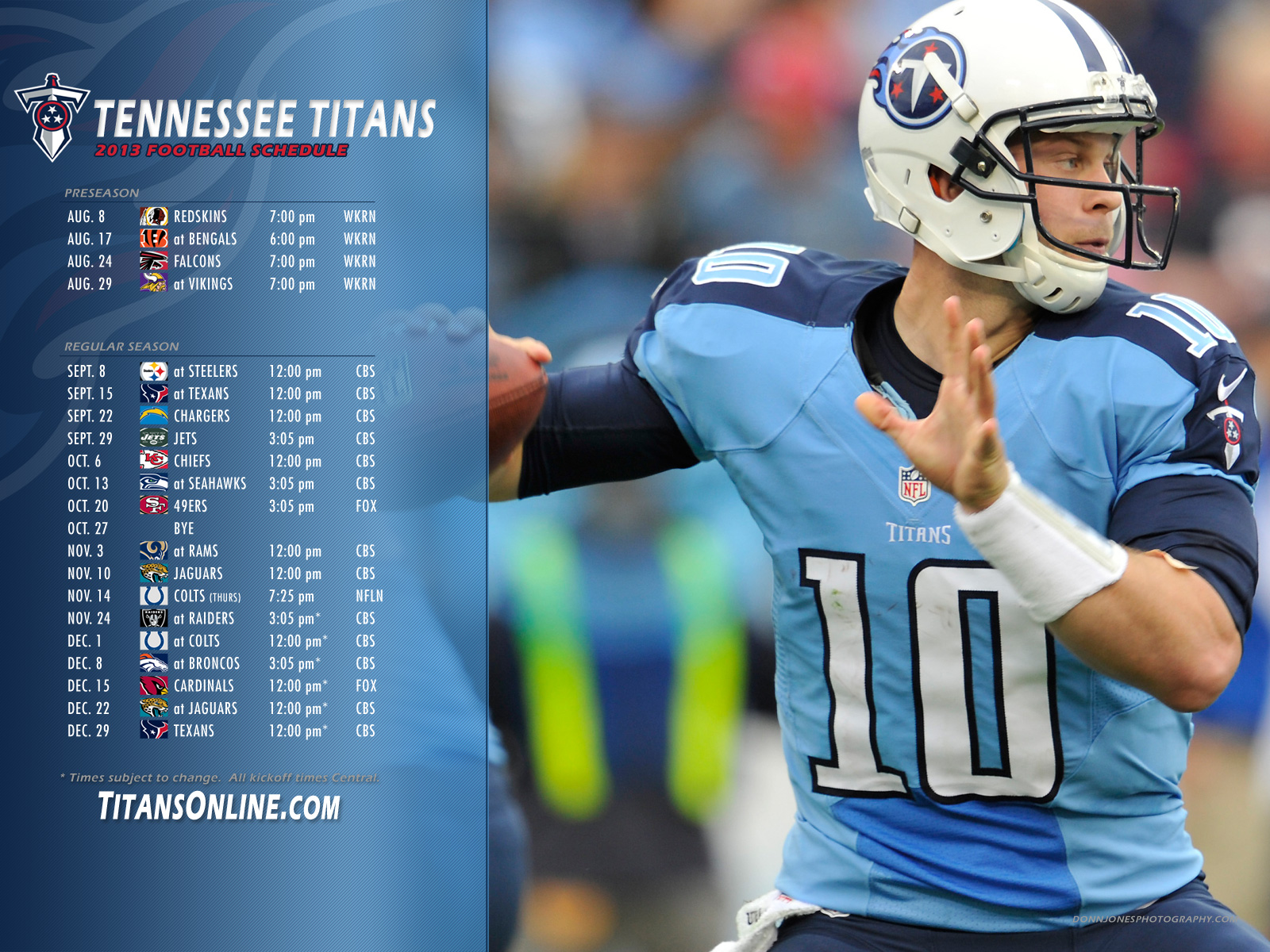 Description: A football player is throwing a ball in a game with a full schedule of times on the sideline.