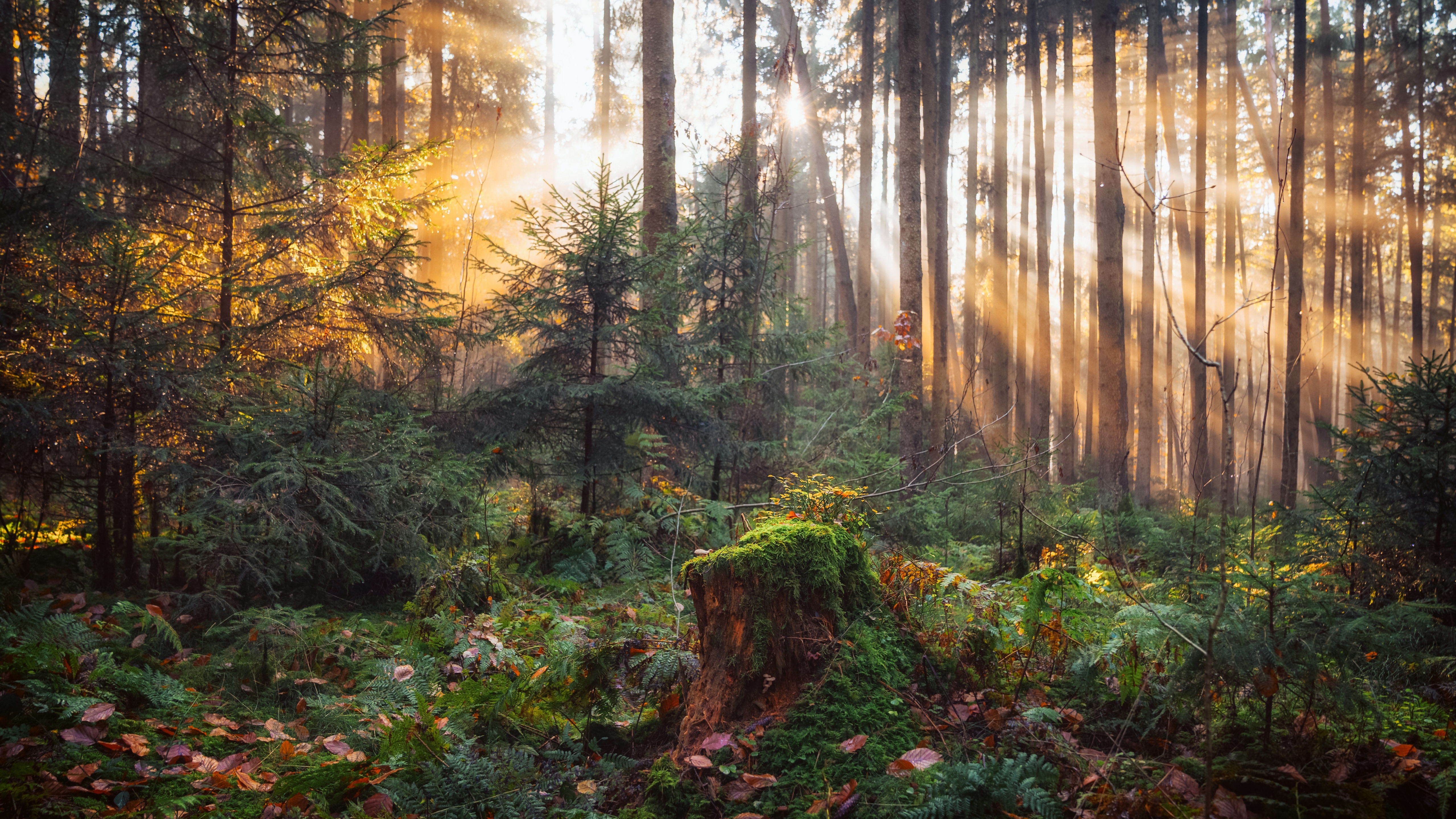 Description: A forest filled with lots of trees and plants next to a forest filled with lots of trees and plants.