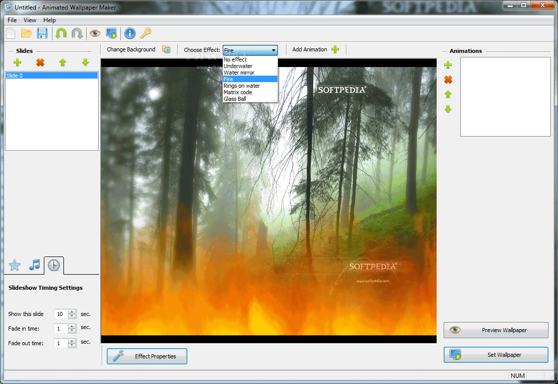 Description: A computer screen shot of a forest with fire in the background and a text box below it that reads.