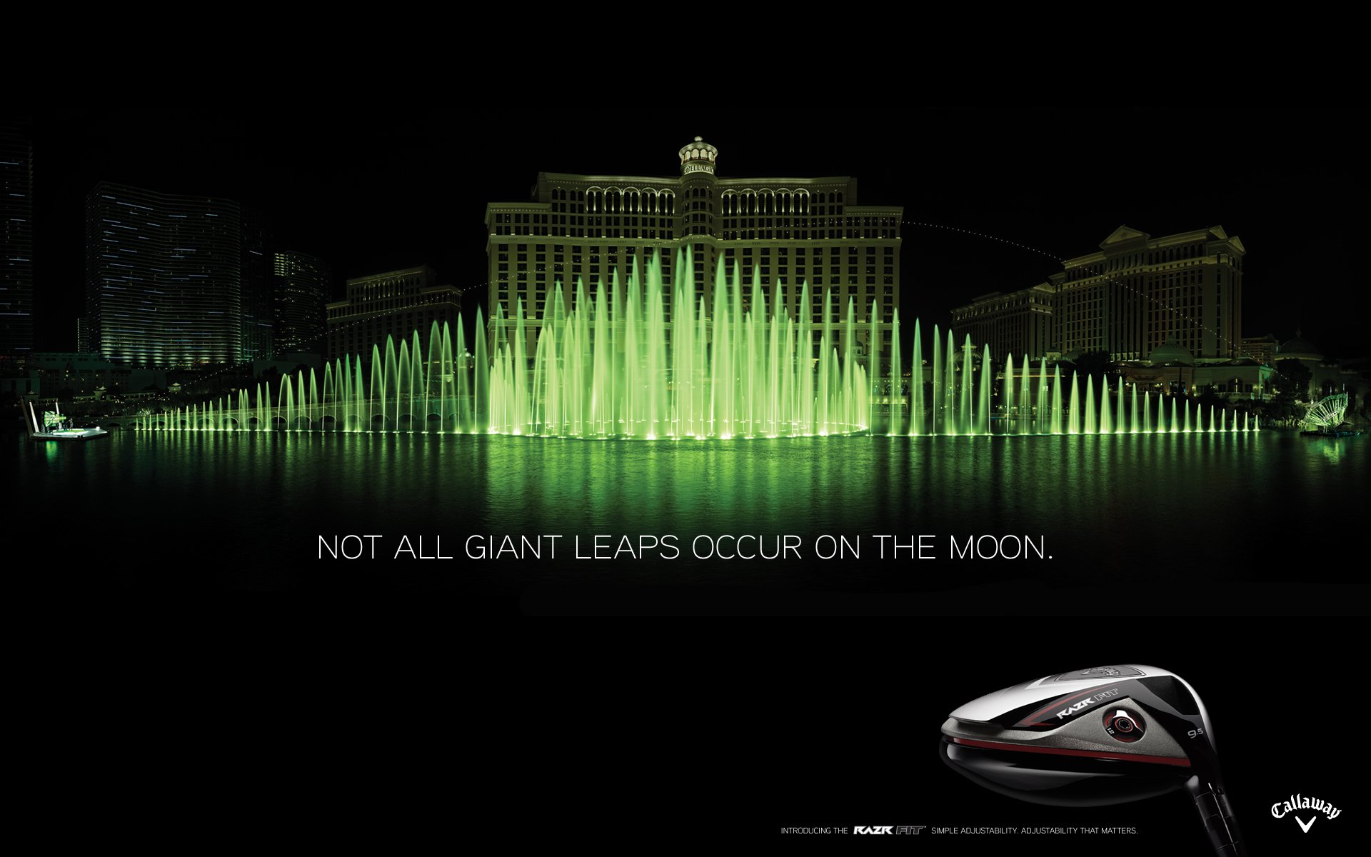 Description: A picture of a fountain with a golf club in front of it and a picture of a building with a fountain.