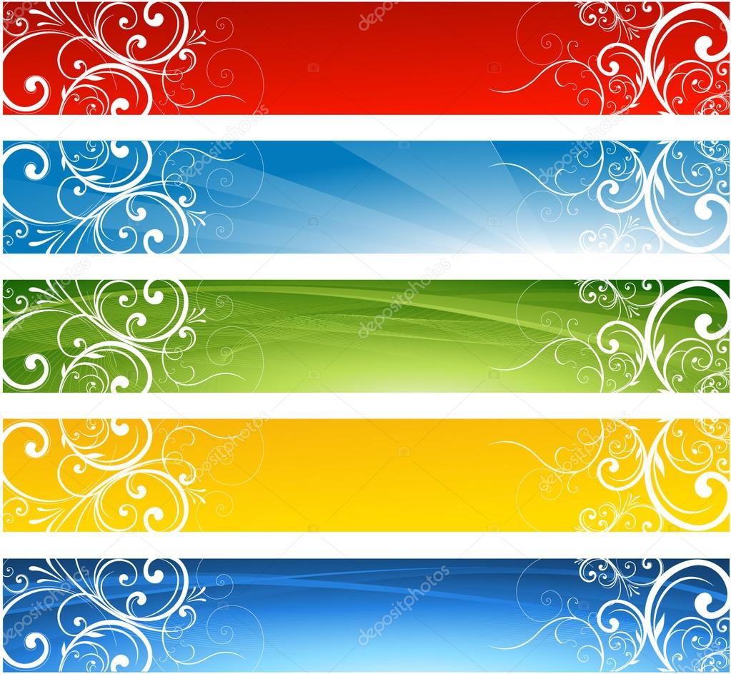 Description: Four banners with swirls and sunbeams on them stock photo 549999.