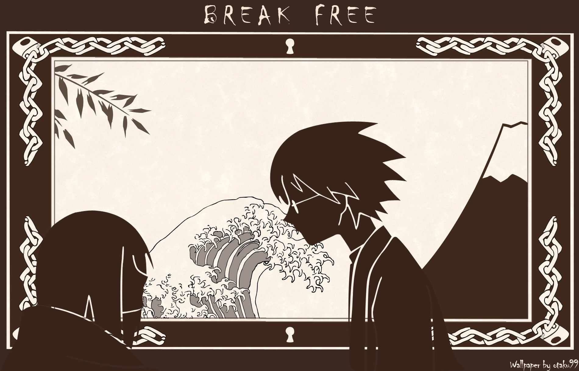 Description: A man looking at a picture of a wave in a frame with the words freak free above it and a picture of a man with a wave in the background.