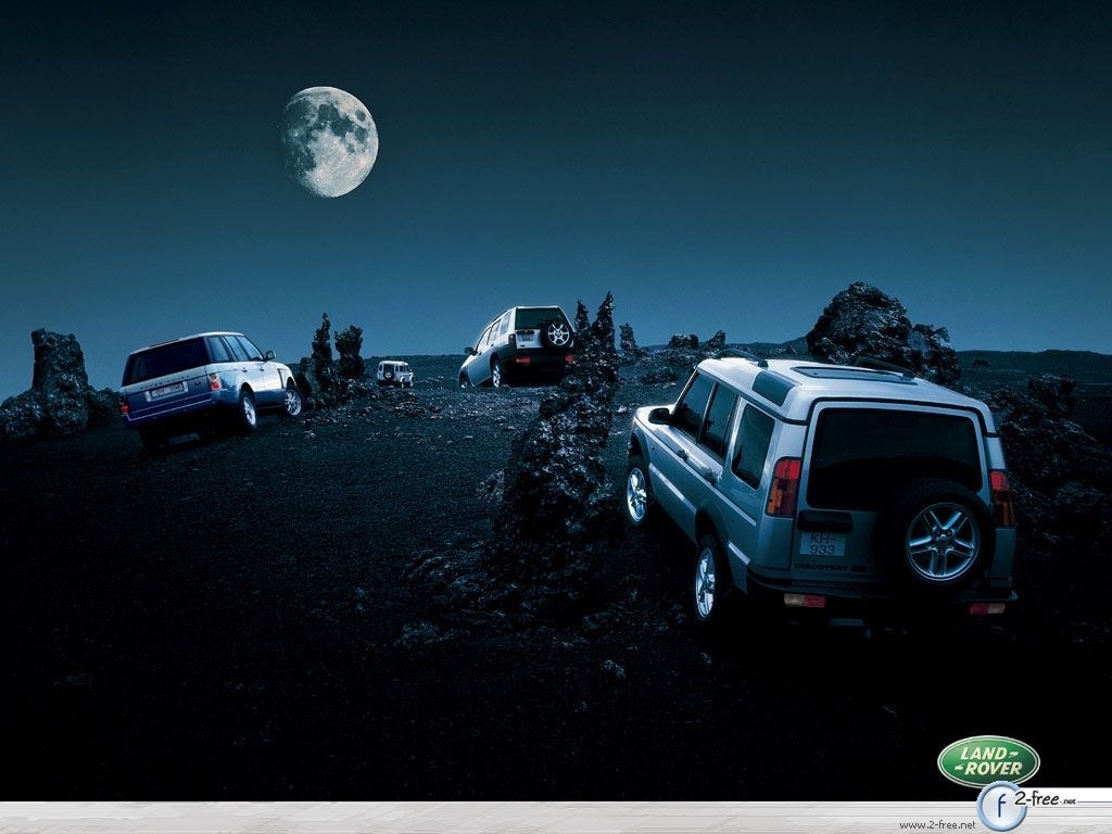 Description: A full moon is seen above a group of cars parked on a hill side in the desert at night.