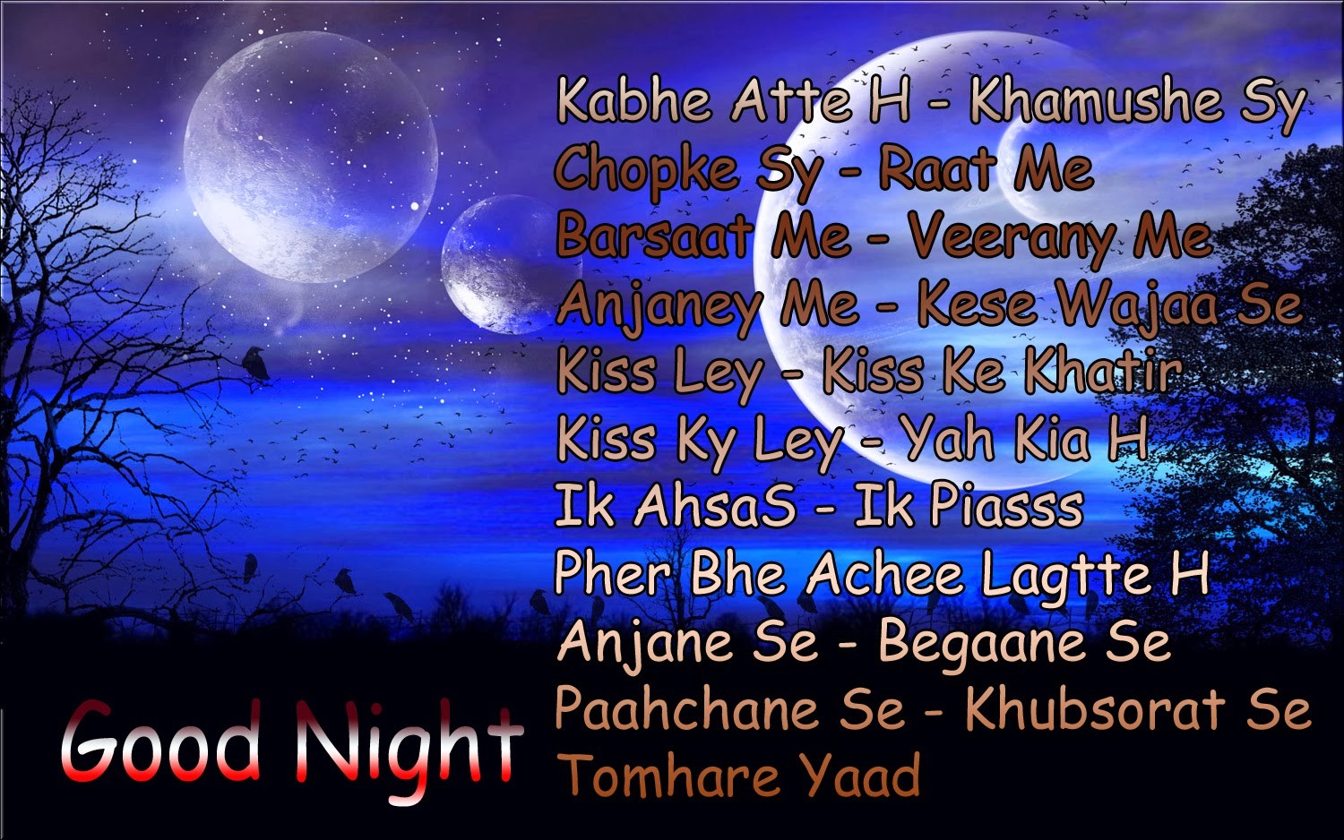 Description: A poster with a full moon and some words on it in the middle of it.