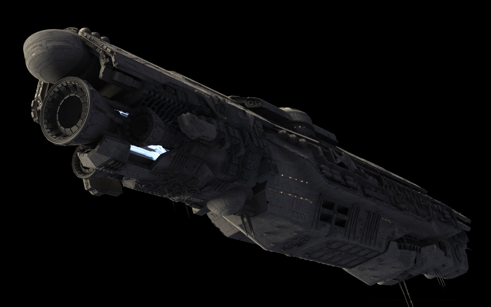 Description: A futuristic looking object with a black background and a white light in the center of the object is a large.