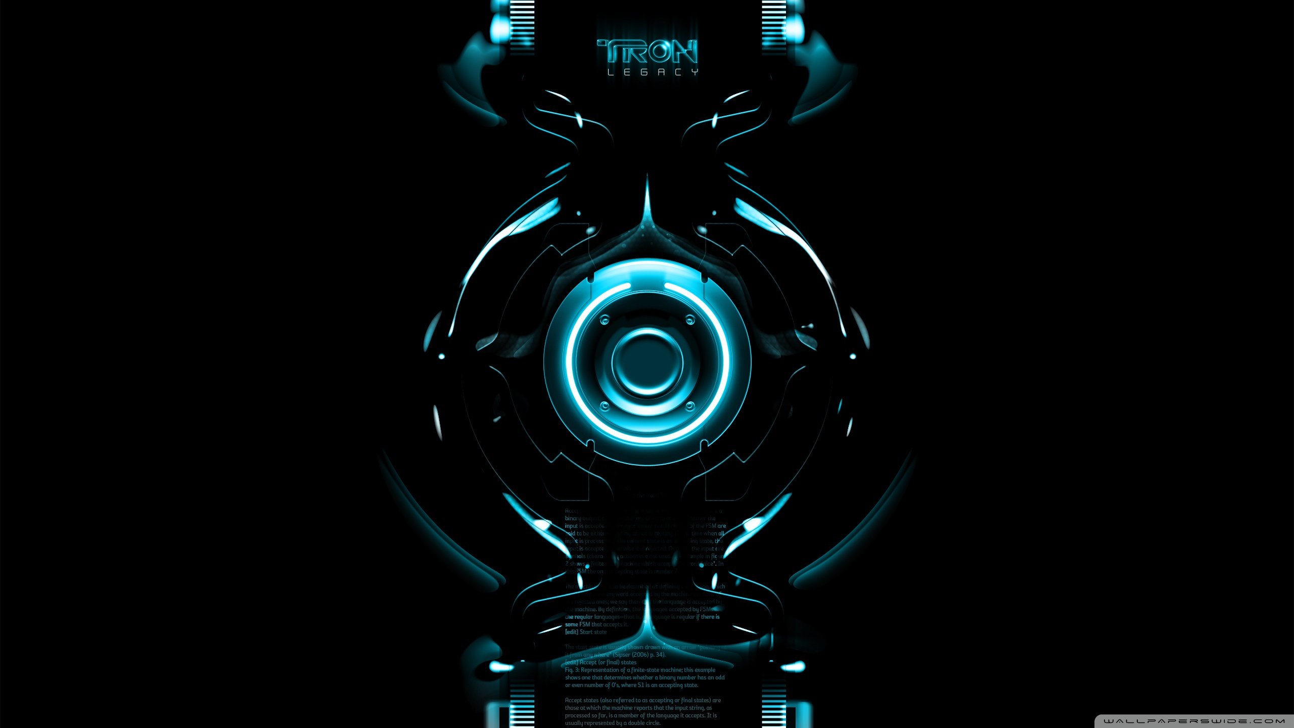 Description: A futuristic blue and black background with a circular design on it's side and a black background with a white circle on the bottom.