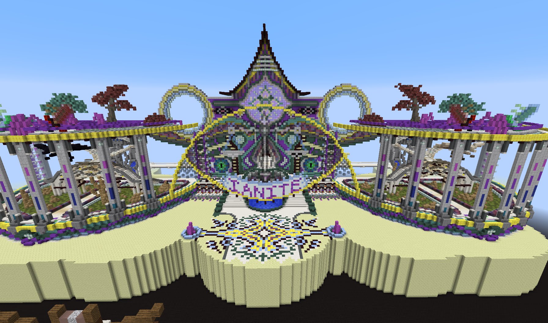 Description: A computer generated image of a futuristic city with a clock tower and a fountain in the center of the picture.