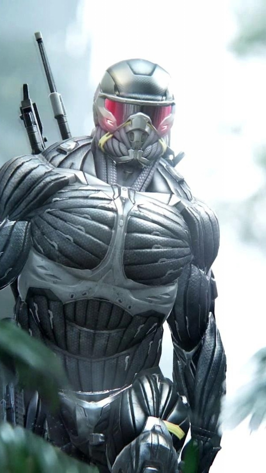 Description: A man in a futuristic suit holding a gun and a gun in his hand.