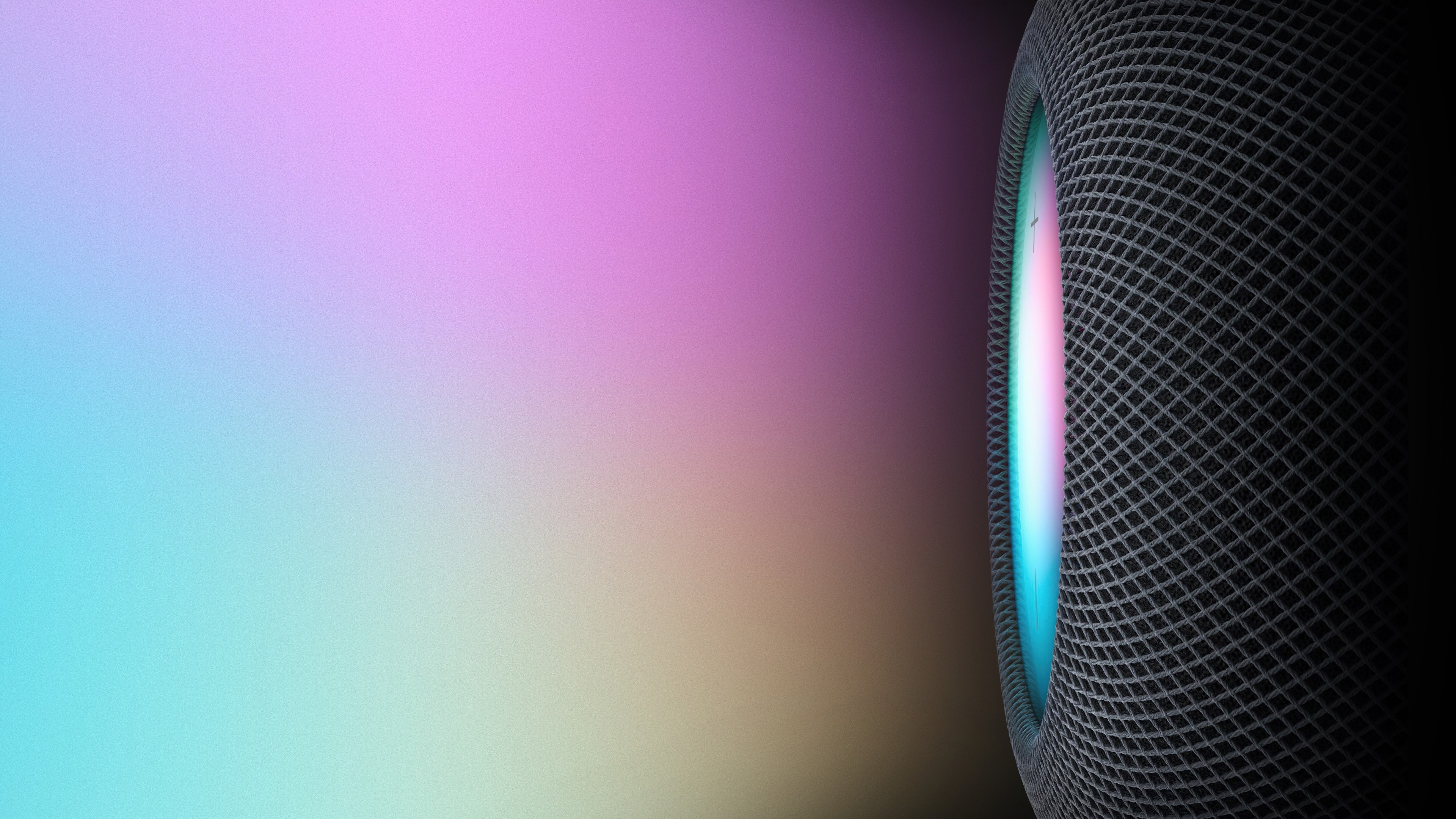 Description: A close up of a speaker on a black background with a rainbow hued background behind it and a black speaker.