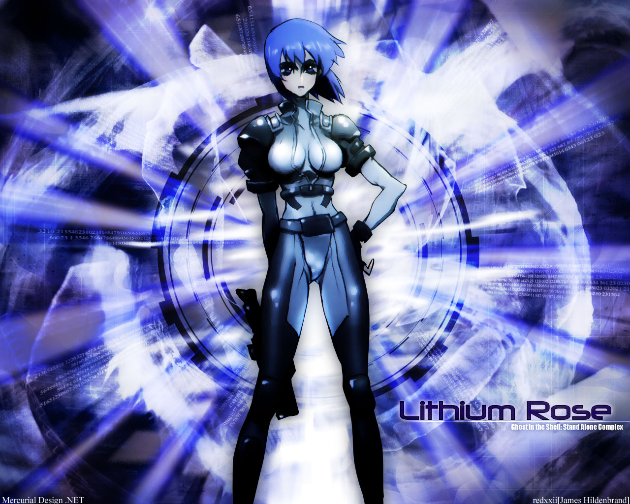 Description: A woman in a futuristic suit standing in front of a blue and white background with a futuristic design on it.