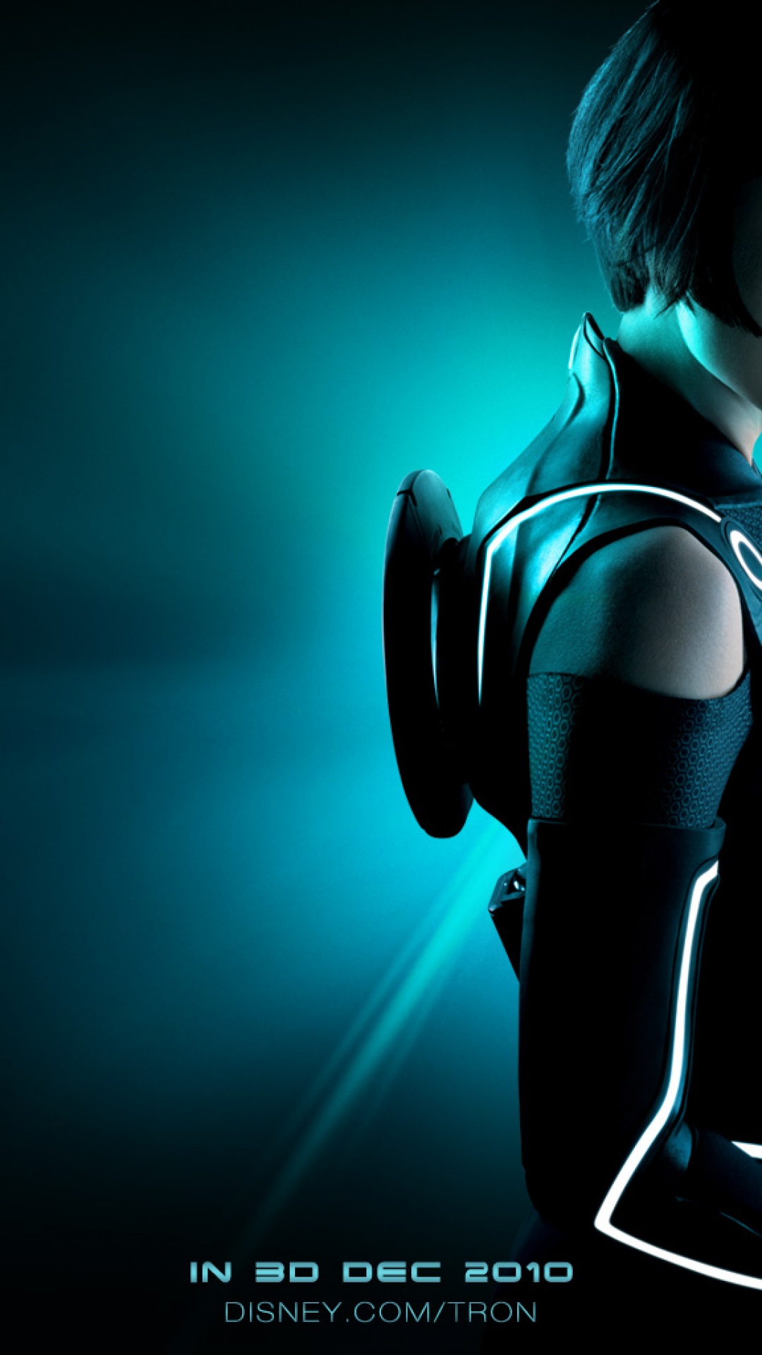 Description: A woman in a futuristic suit with a neon light on her back and shoulder.
