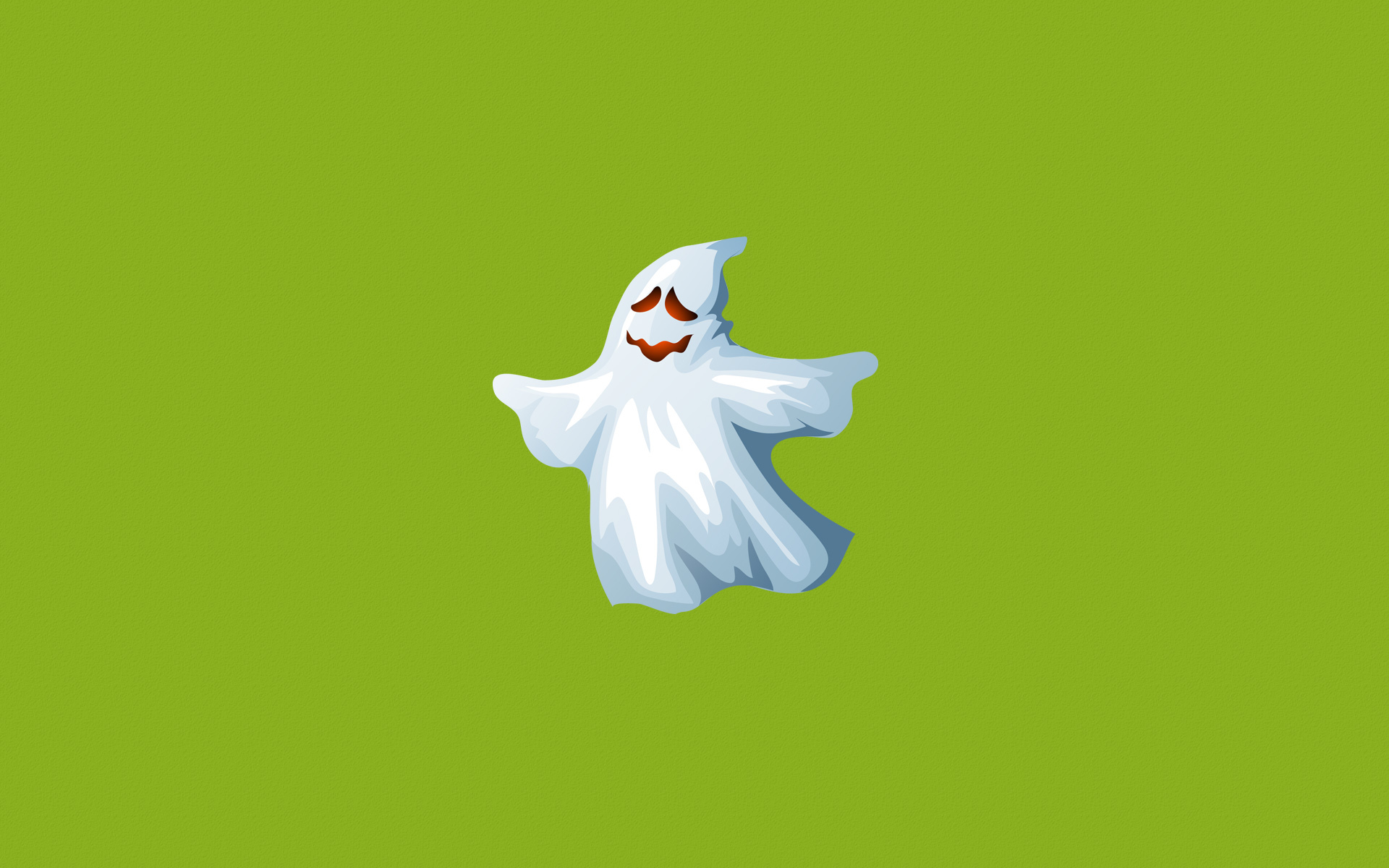 Description: A ghost flying through the air with a green background and a red eyes on it's face and mouth.