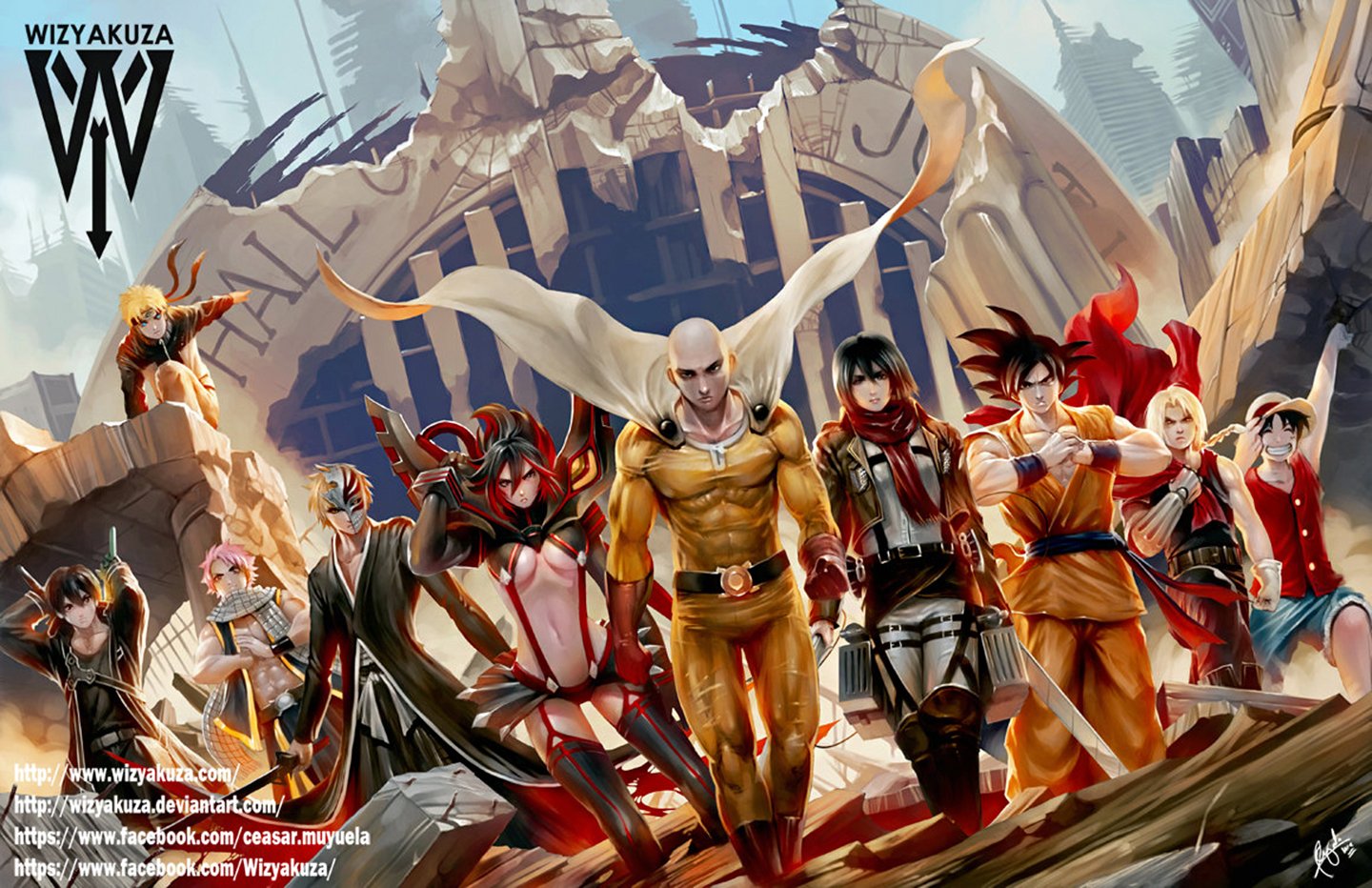 Description: A group of people standing next to each other in front of a giant structure with a giant bird on top of it.