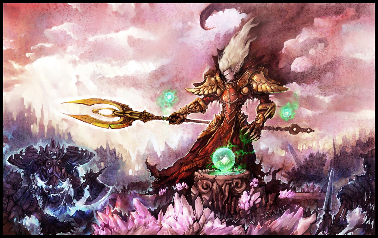 Description: A painting of a giant creature with a sword and a glowing orb in its hand.