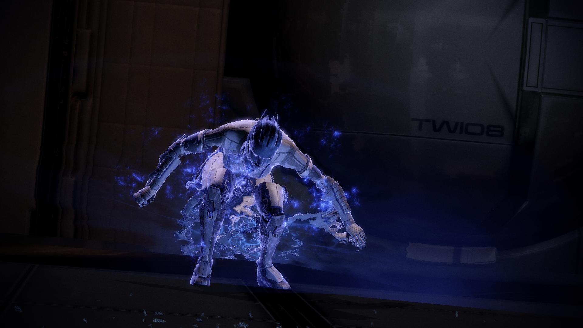 Description: A giraffe is standing in a dark room with blue flames coming out of it's back.