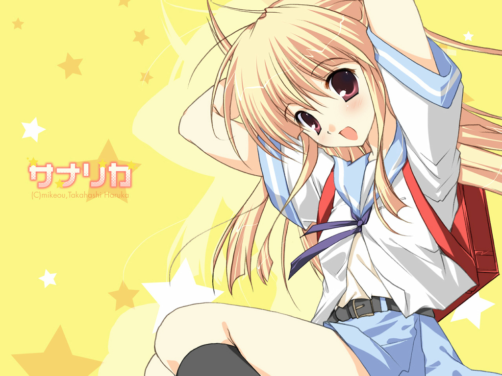 Description: A girl with a backpack on her back and a star background with a yellow background and a yellow star.