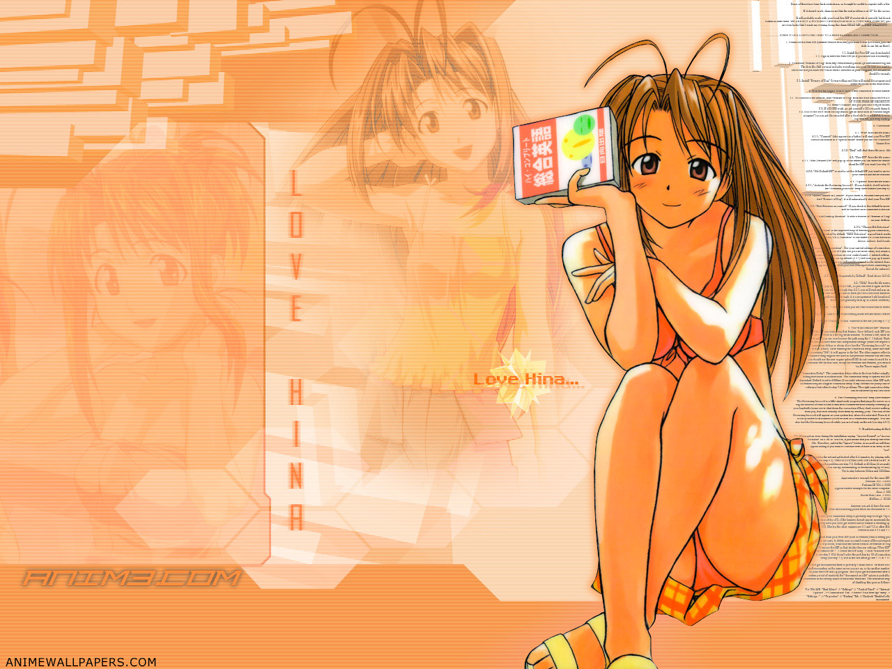 Description: A girl in a bikini holding a cell phone up to her face and sitting on the ground with a background of anime characters.