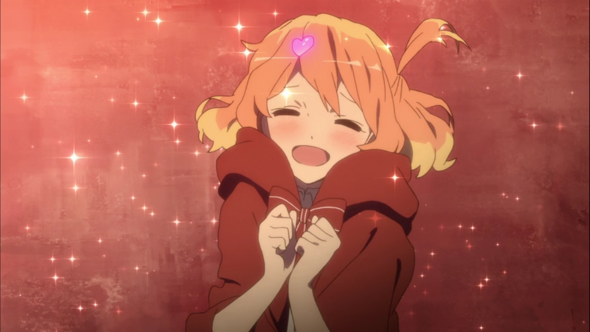 Description: A girl with blonde hair and a red coat is holding a microphone in her hands and looking at the camera.
