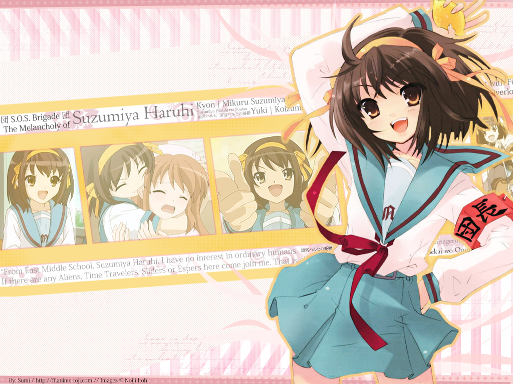 Description: A girl in a blue dress holding a red ribbon and a red tag in her hand with other girls behind her.
