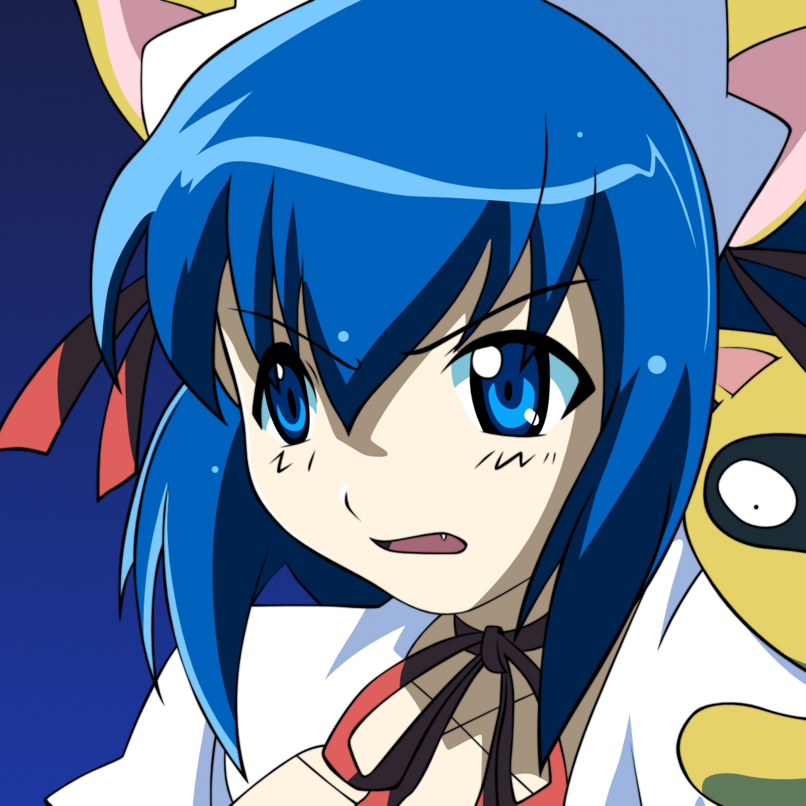Description: A girl with blue hair and a cat ears on her head and a cat ears on her head.