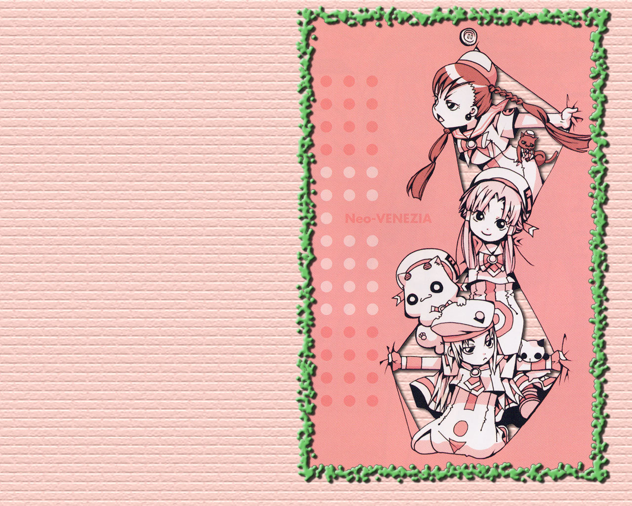 Description: A drawing of a girl and a boy with a dog on a pink background with a green border around them.