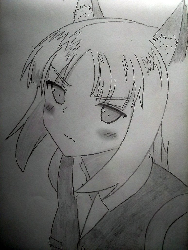 Description: A drawing of a girl with a cat ears on her head and a cat tail on her head.