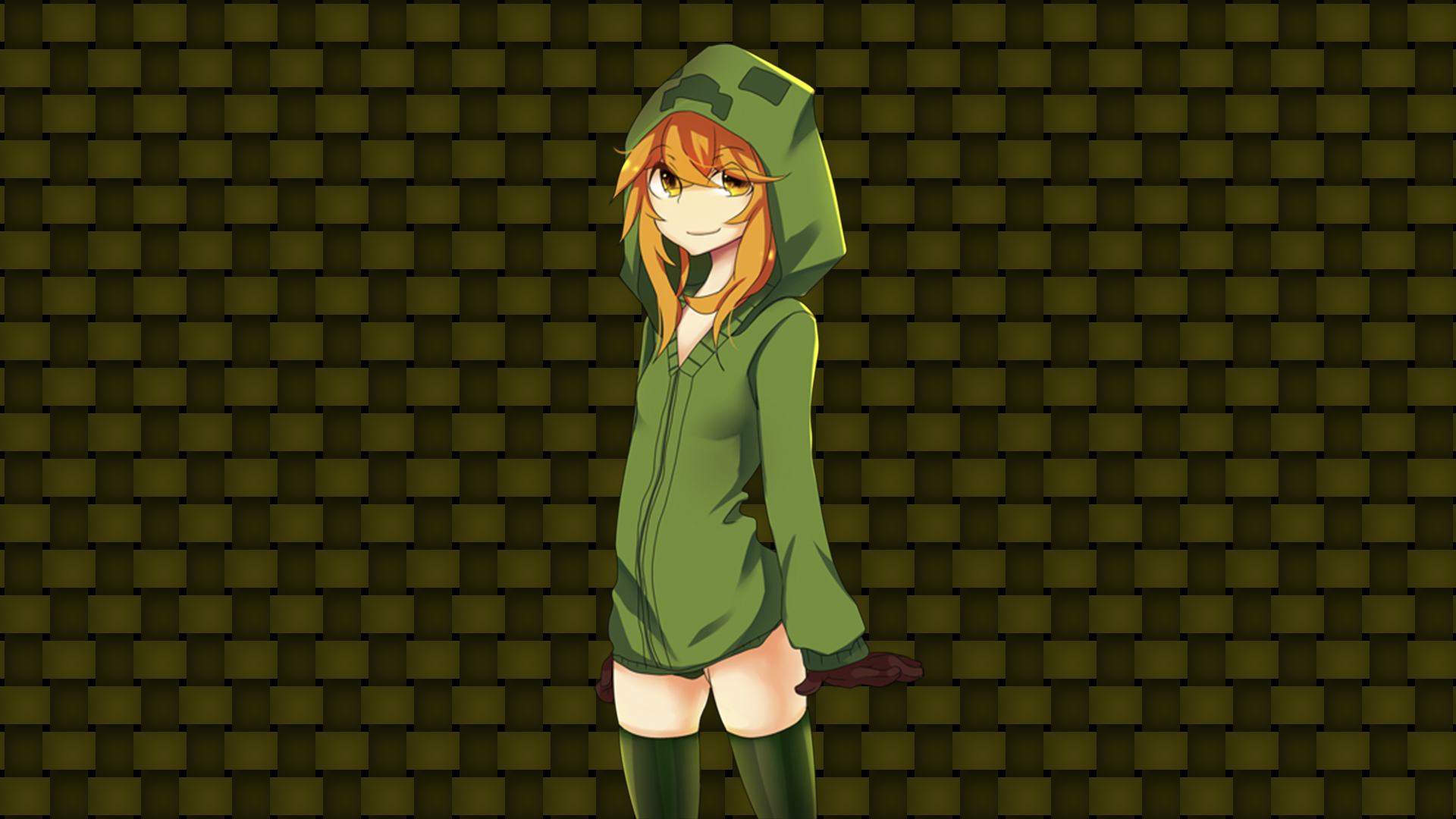 Description: A girl in a green hoodie is standing in front of a green background with a black checkered pattern.