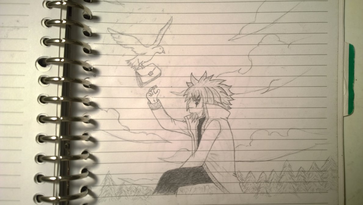 Description: A drawing of a girl and a guy in a notebook with a pencil on it.