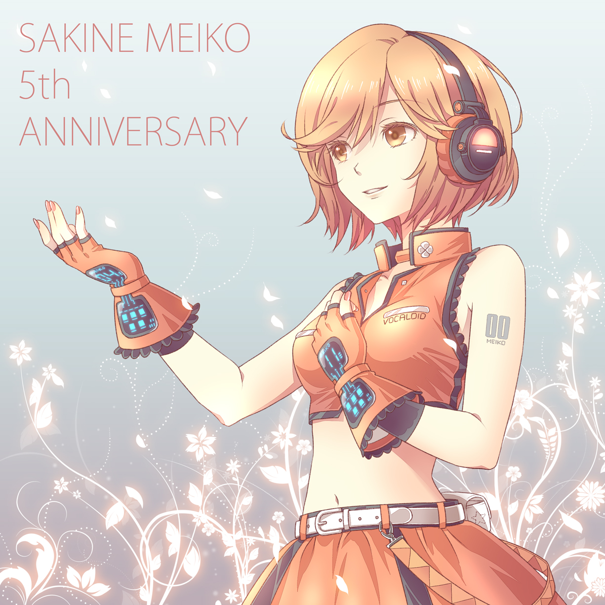 Description: A girl with headphones and a dress holding a pair of gloves in her hand with a message saying.
