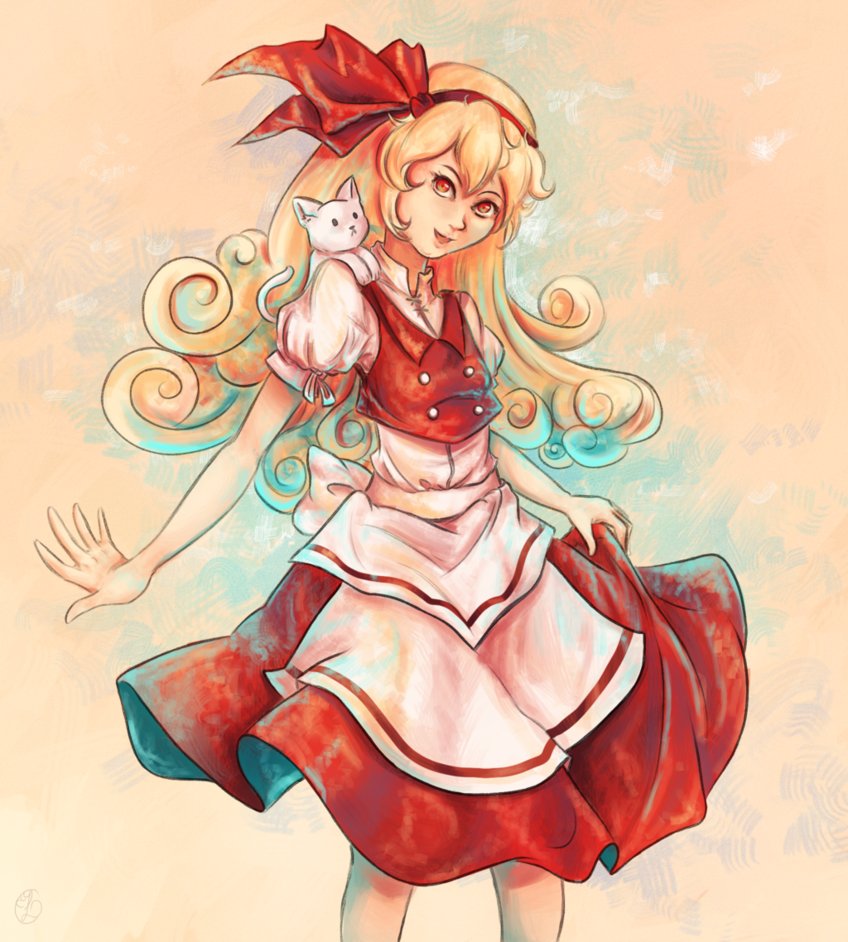 Description: A drawing of a girl holding a cat in her arms and a cat in her hand.