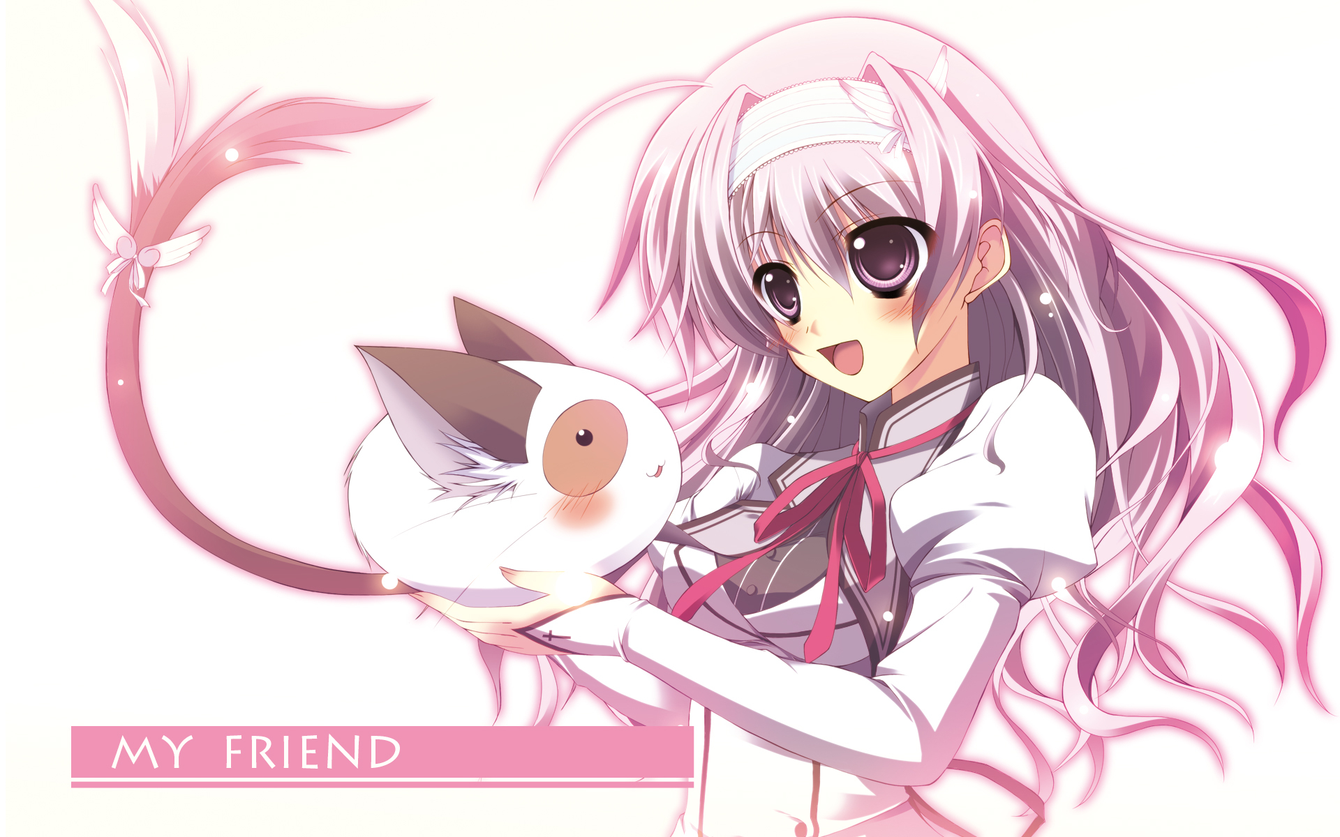 Description: A girl holding a cat with a pink ribbon around her neck and a pink ribbon around her neck.