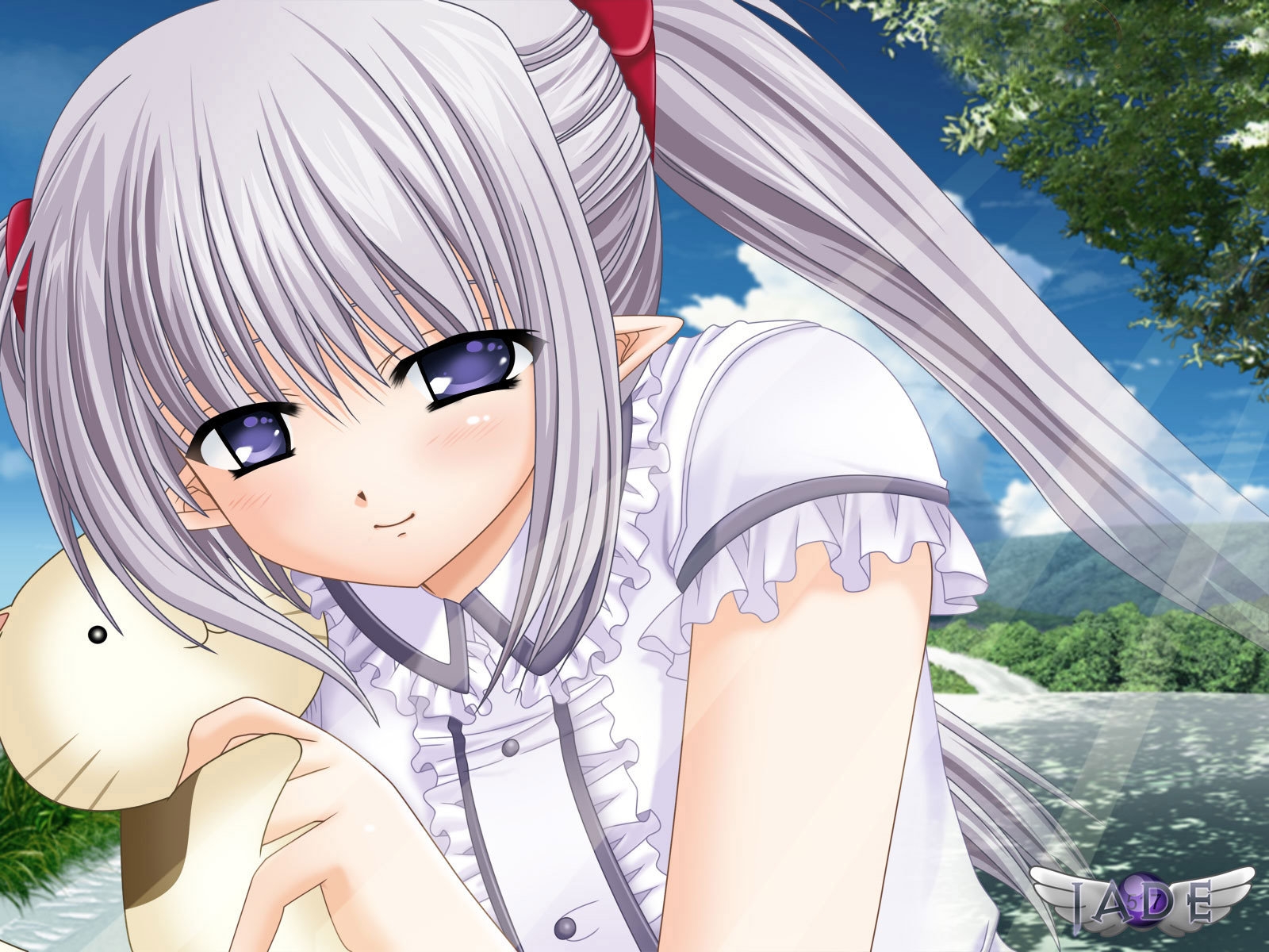 Description: A girl with long hair holding a cat in her hands and a tree in the background with a sky and clouds.