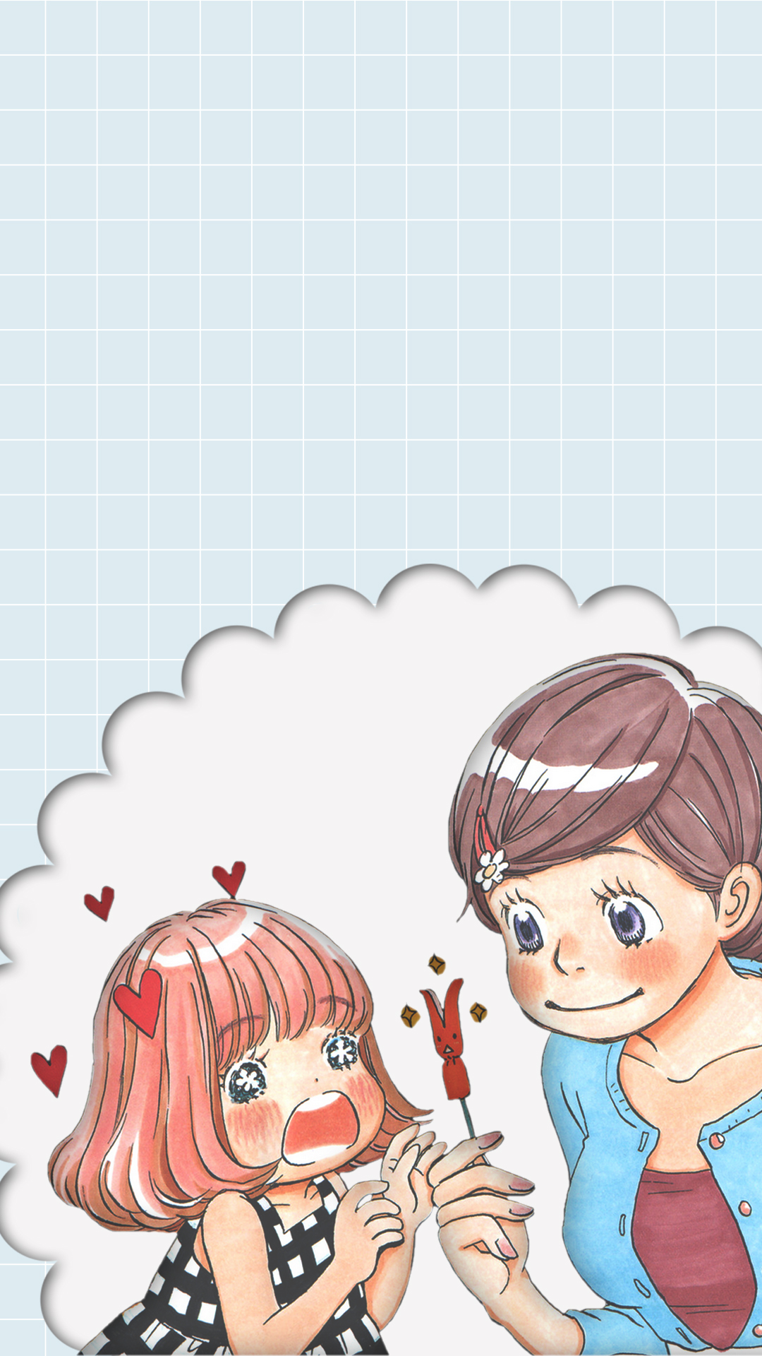 Description: A girl and a girl holding a knife together with hearts on the background of a blue background with a white cloud.