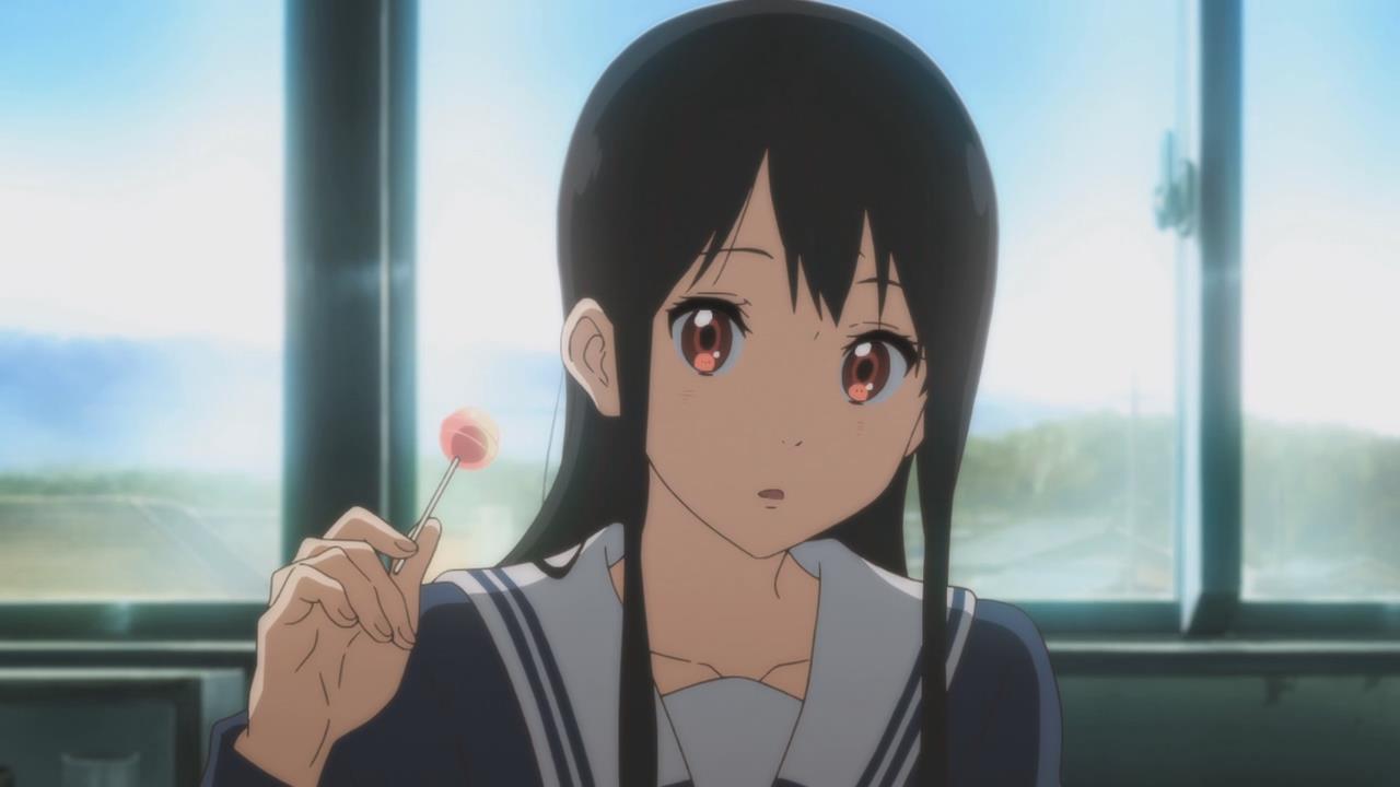 Description: A girl with long hair holding a flower in her hand and looking at the camera with a serious look on her face.