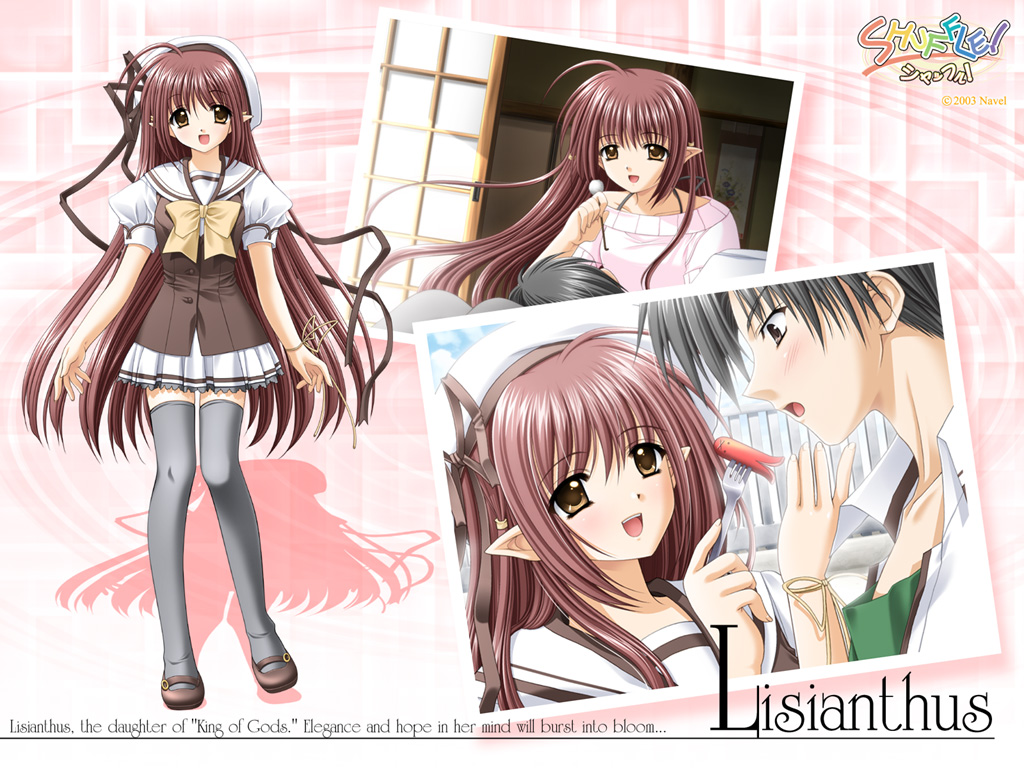 Description: A girl with long hair and a white shirt and a pink background with a picture of a girl with long hair.