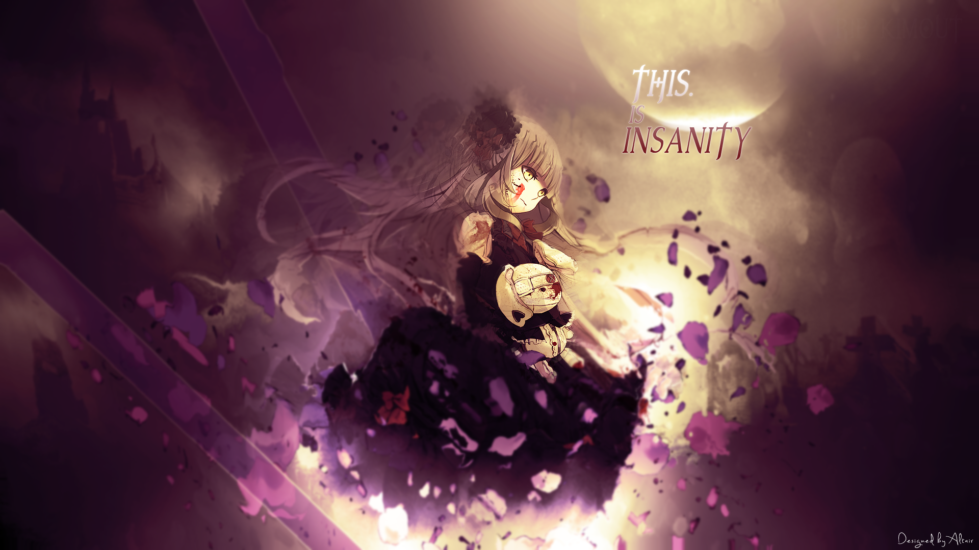 Description: A girl with long hair and a dress is holding a teddy bear in her arms and a purple background.