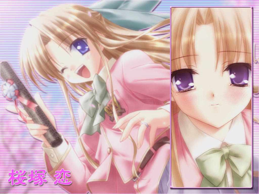 Description: A girl with long hair holding a gun and a cell phone in her hand and a pink background with a blue sky.