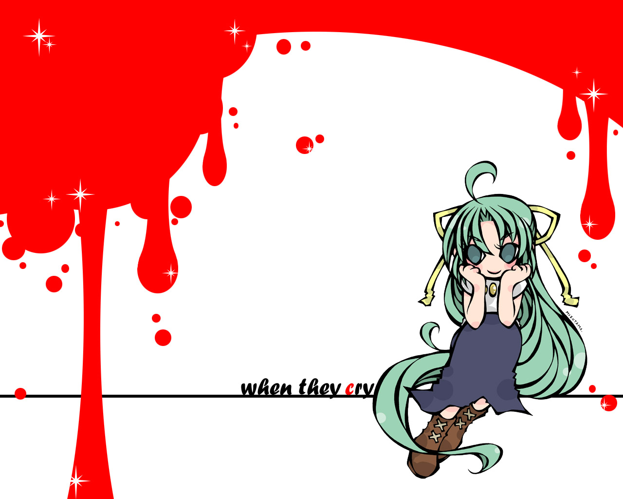 Description: A girl with long hair and a hat on her head sitting on a red background with dripping paint on it.
