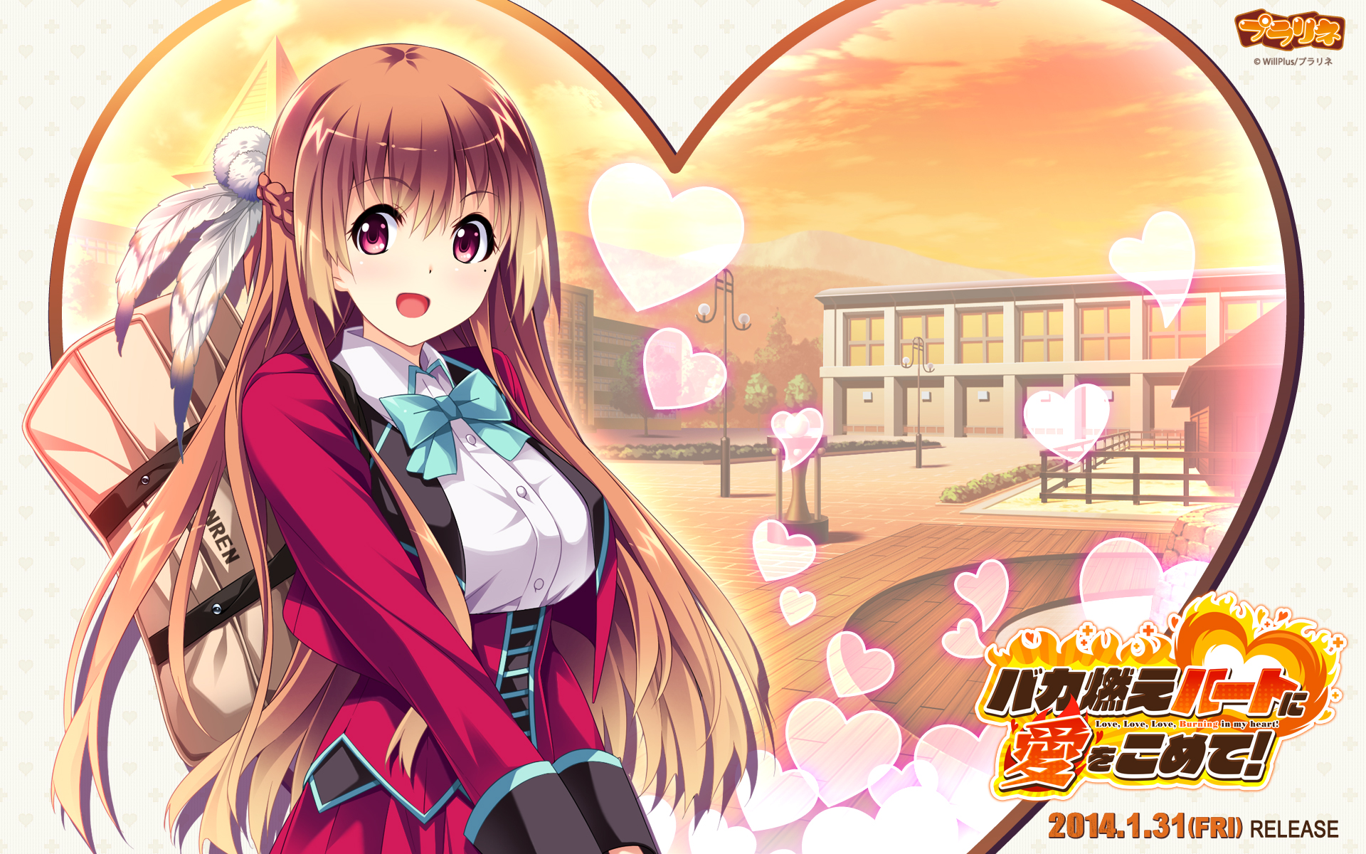 Description: A girl in a pink dress and a heart shaped frame with a building in the background and a pink heart.