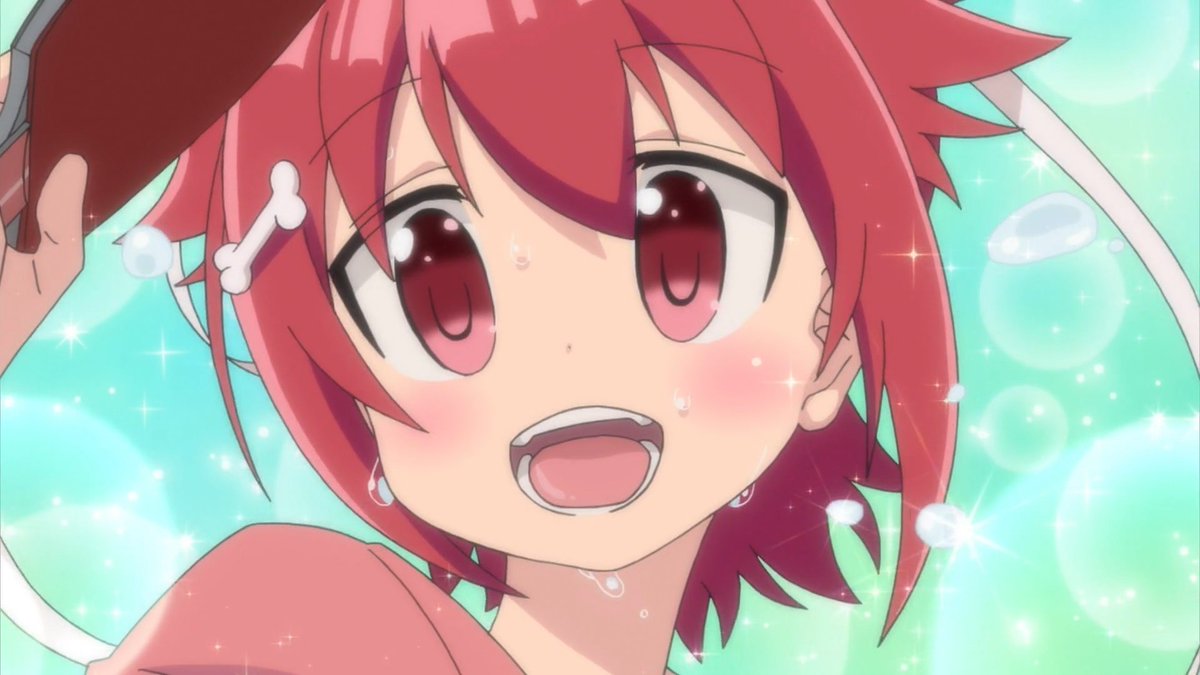 Description: A girl with pink hair and a pink shirt is making a face with her hands and a hat on her head.